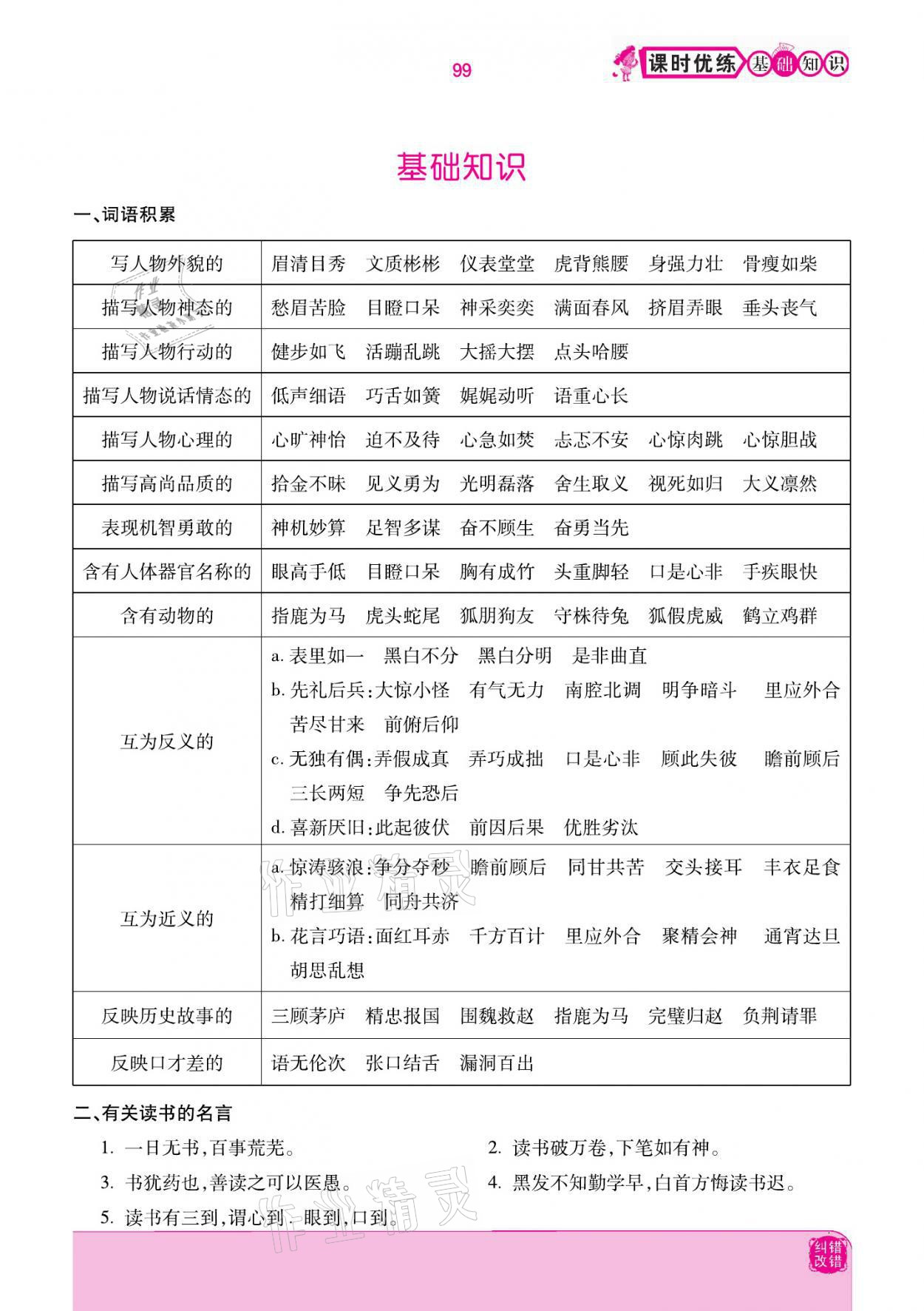 注:目前有些书本章节名称可能整理的还不是很完善,但都是按照顺序排列的,请同学们按照顺序仔细查找。练习册 2021年小学课时优练五年级语文下册部编版 答案主要是用来给同学们做完题方便对答案用的,请勿直接抄袭。