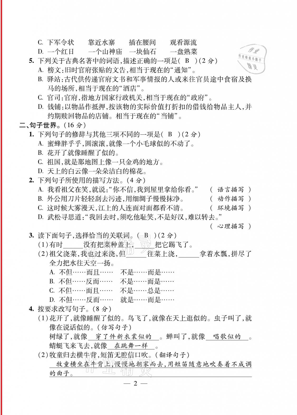 注:目前有些书本章节名称可能整理的还不是很完善,但都是按照顺序排列的,请同学们按照顺序仔细查找。练习册 2021年小学课时优练五年级语文下册部编版 答案主要是用来给同学们做完题方便对答案用的,请勿直接抄袭。