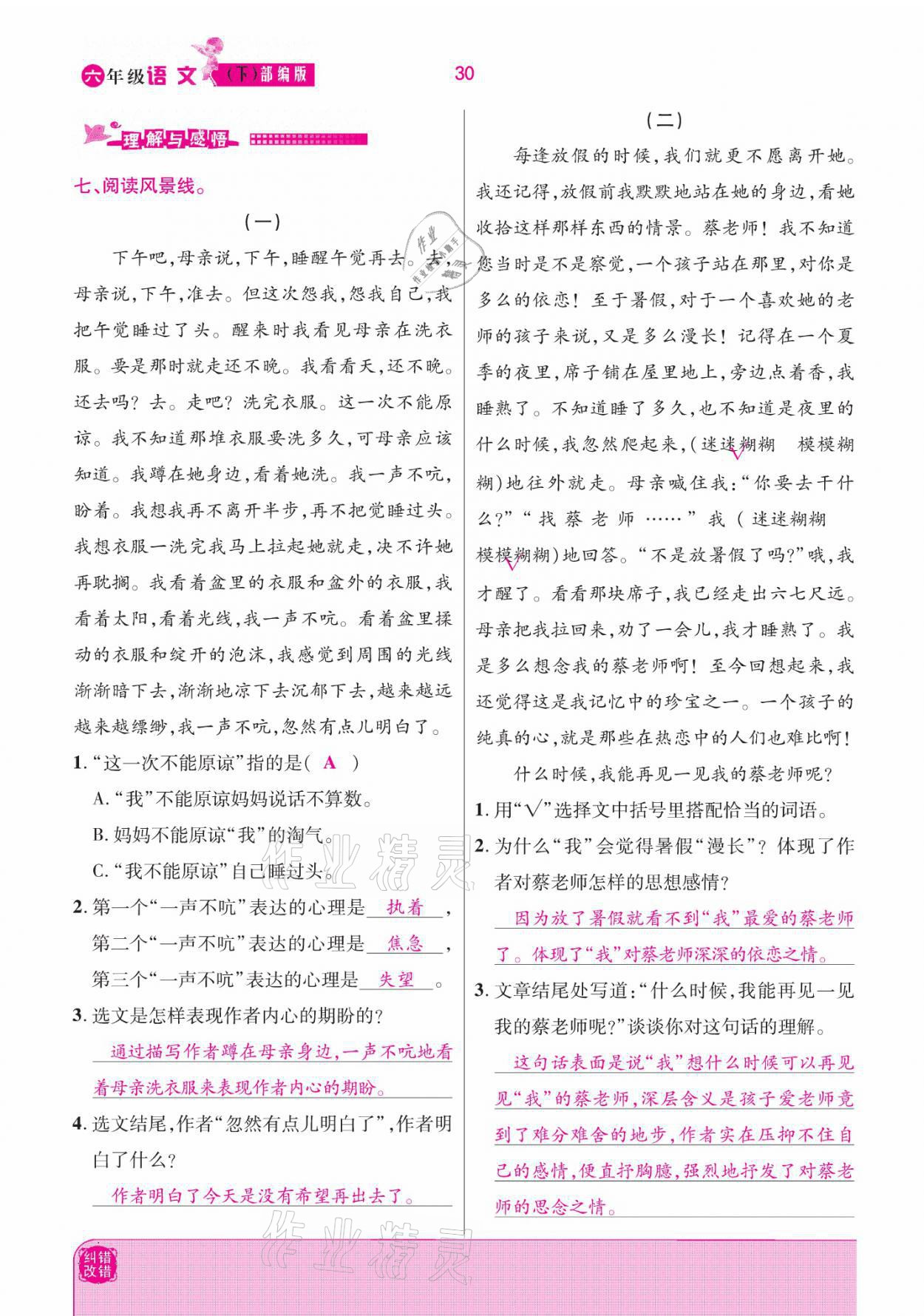 注:目前有些书本章节名称可能整理的还不是很完善,但都是按照顺序排列的,请同学们按照顺序仔细查找。练习册 2021年小学课时优练六年级语文下册部编版 答案主要是用来给同学们做完题方便对答案用的,请勿直接抄袭。