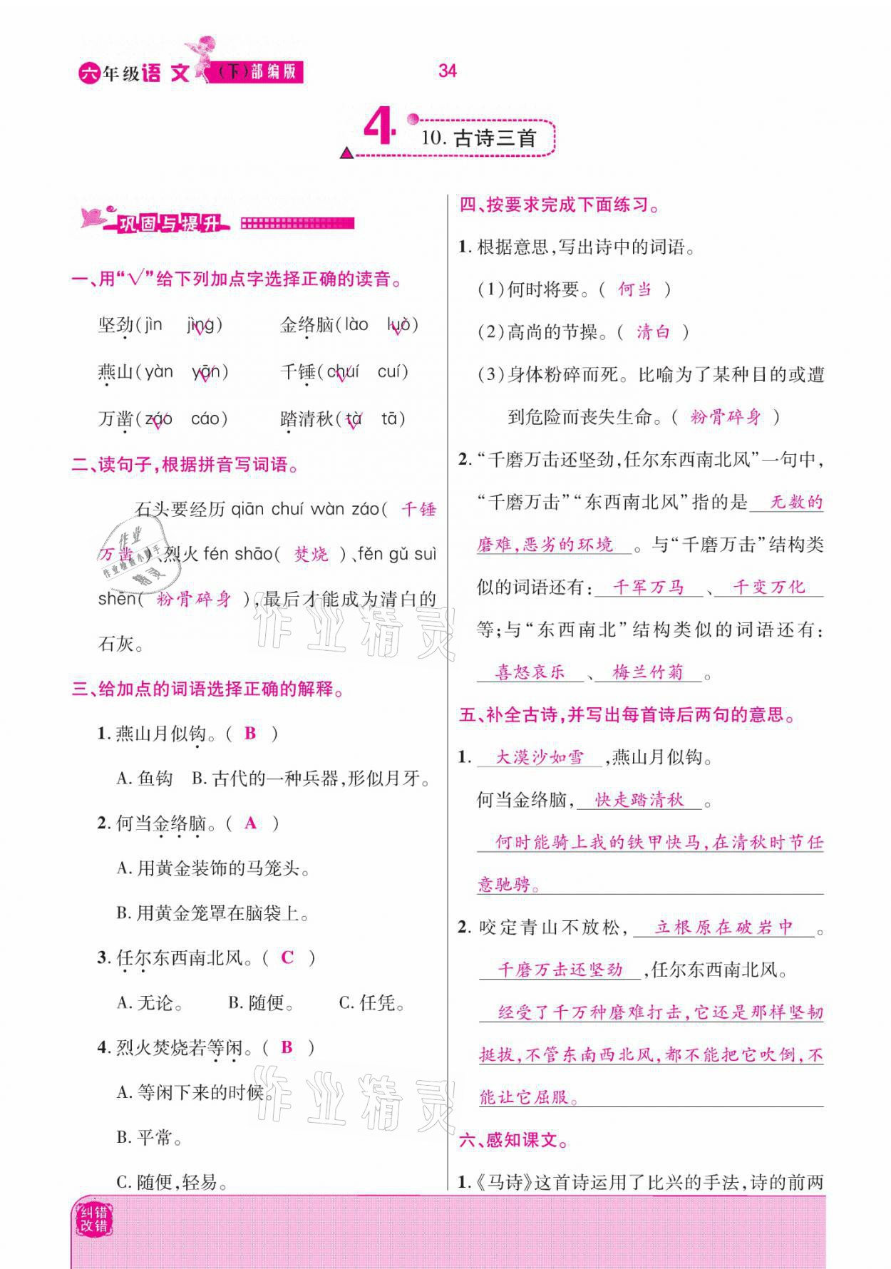注:目前有些书本章节名称可能整理的还不是很完善,但都是按照顺序排列的,请同学们按照顺序仔细查找。练习册 2021年小学课时优练六年级语文下册部编版 答案主要是用来给同学们做完题方便对答案用的,请勿直接抄袭。