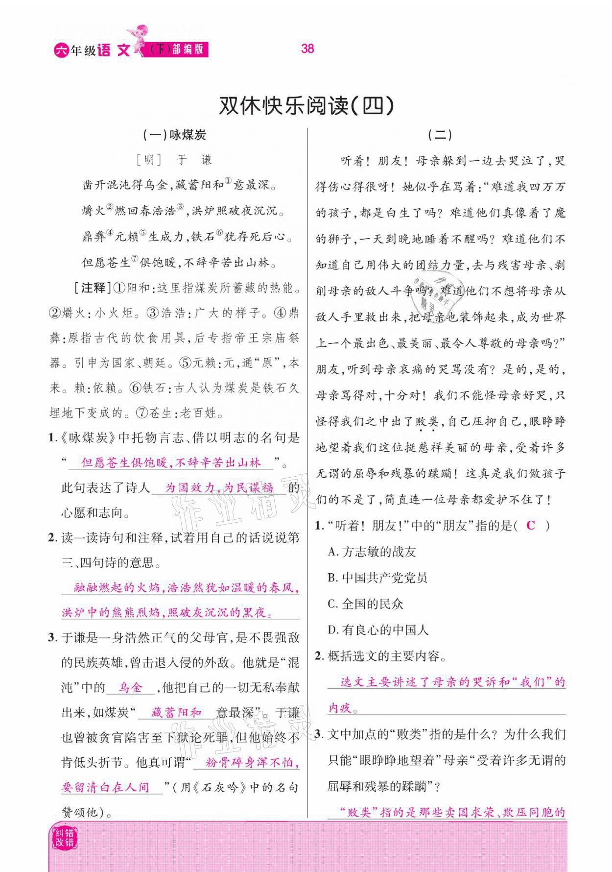 注:目前有些书本章节名称可能整理的还不是很完善,但都是按照顺序排列的,请同学们按照顺序仔细查找。练习册 2021年小学课时优练六年级语文下册部编版 答案主要是用来给同学们做完题方便对答案用的,请勿直接抄袭。