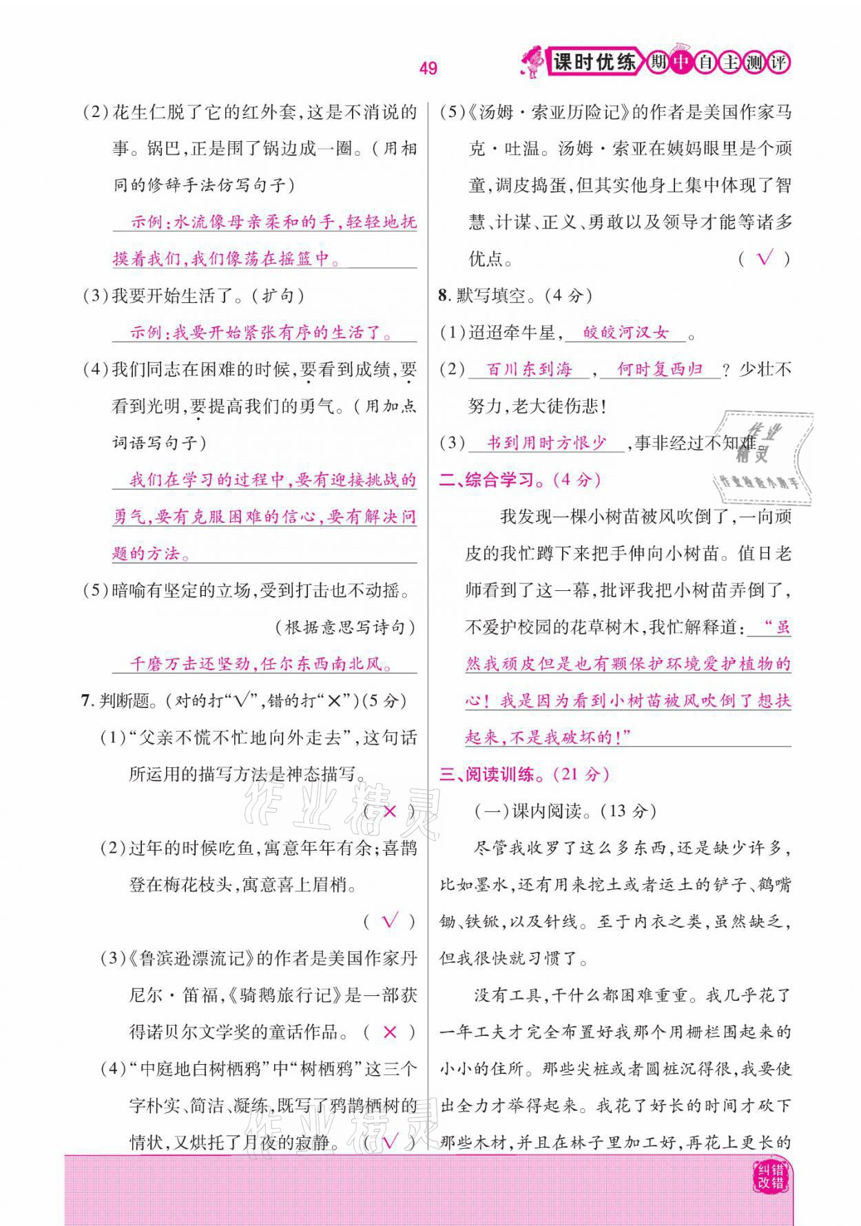 注:目前有些书本章节名称可能整理的还不是很完善,但都是按照顺序排列的,请同学们按照顺序仔细查找。练习册 2021年小学课时优练六年级语文下册部编版 答案主要是用来给同学们做完题方便对答案用的,请勿直接抄袭。