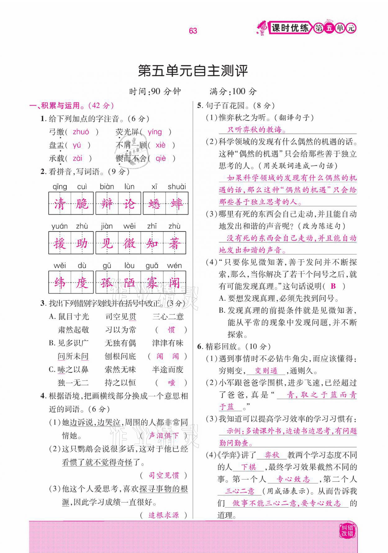 注:目前有些书本章节名称可能整理的还不是很完善,但都是按照顺序排列的,请同学们按照顺序仔细查找。练习册 2021年小学课时优练六年级语文下册部编版 答案主要是用来给同学们做完题方便对答案用的,请勿直接抄袭。