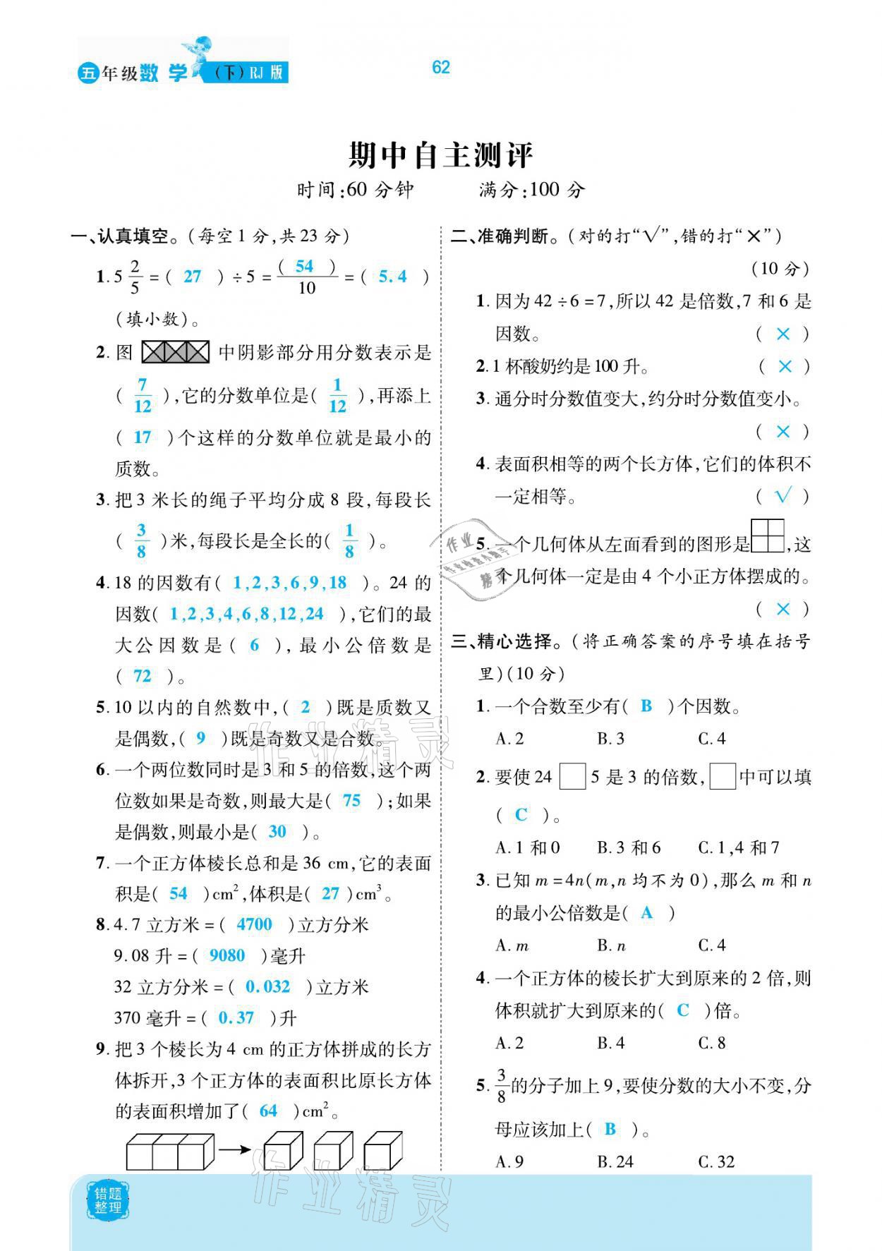 注:目前有些书本章节名称可能整理的还不是很完善,但都是按照顺序排列的,请同学们按照顺序仔细查找。练习册 2021年小学课时优练五年级数学下册人教版新版 答案主要是用来给同学们做完题方便对答案用的,请勿直接抄袭。