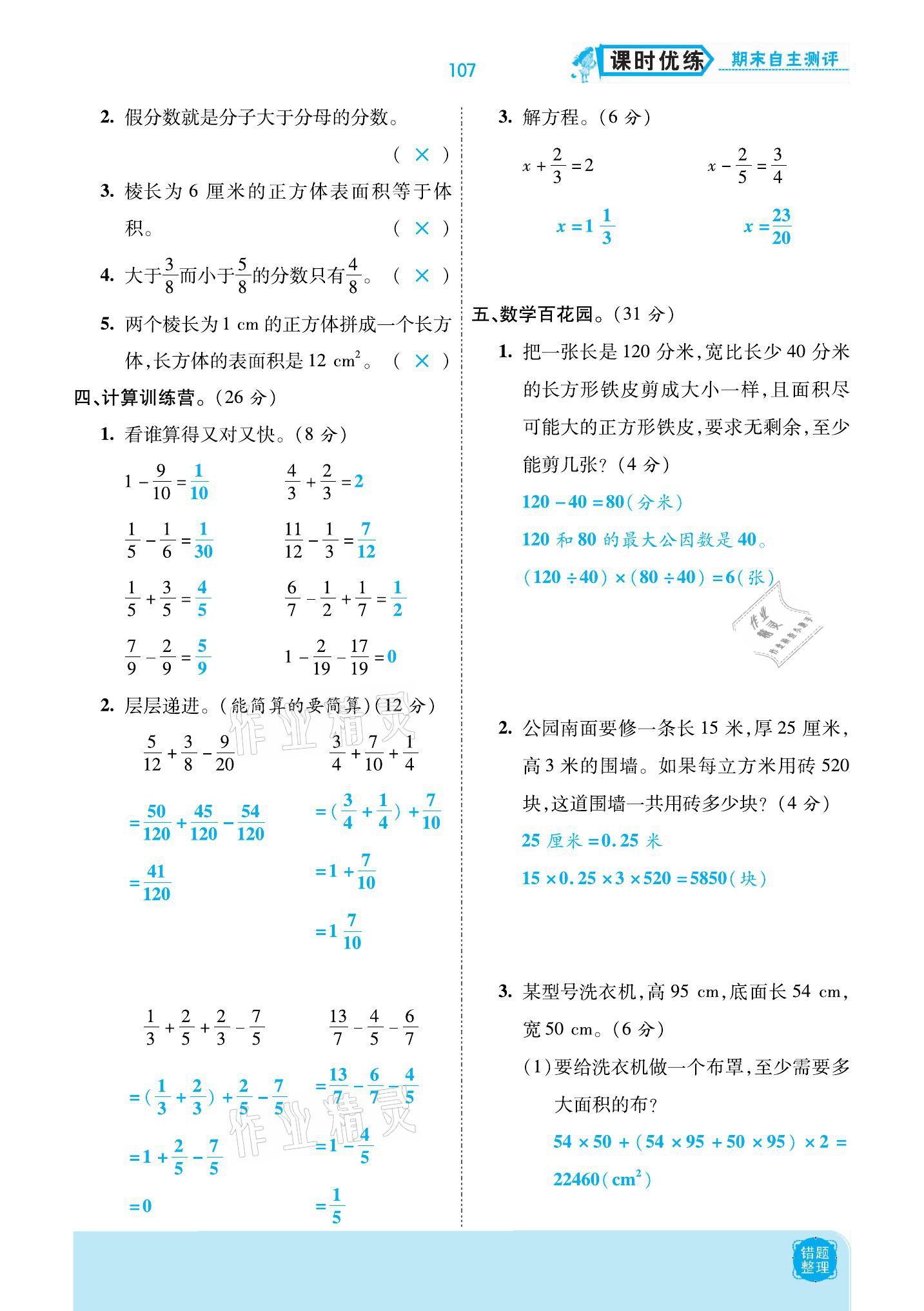 注:目前有些书本章节名称可能整理的还不是很完善,但都是按照顺序排列的,请同学们按照顺序仔细查找。练习册 2021年小学课时优练五年级数学下册人教版新版 答案主要是用来给同学们做完题方便对答案用的,请勿直接抄袭。