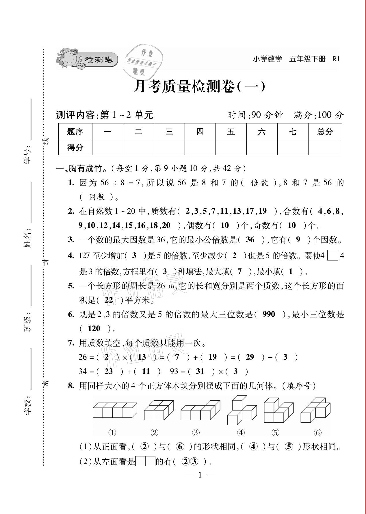 注:目前有些书本章节名称可能整理的还不是很完善,但都是按照顺序排列的,请同学们按照顺序仔细查找。练习册 2021年小学课时优练五年级数学下册人教版新版 答案主要是用来给同学们做完题方便对答案用的,请勿直接抄袭。