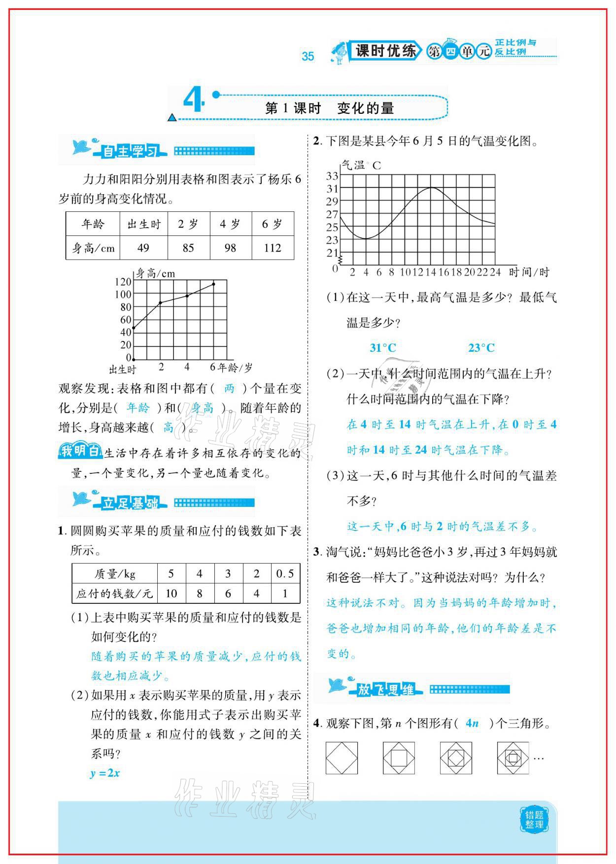 注:目前有些书本章节名称可能整理的还不是很完善,但都是按照顺序排列的,请同学们按照顺序仔细查找。练习册 2021年小学课时优练六年级数学下册北师大版新版 答案主要是用来给同学们做完题方便对答案用的,请勿直接抄袭。