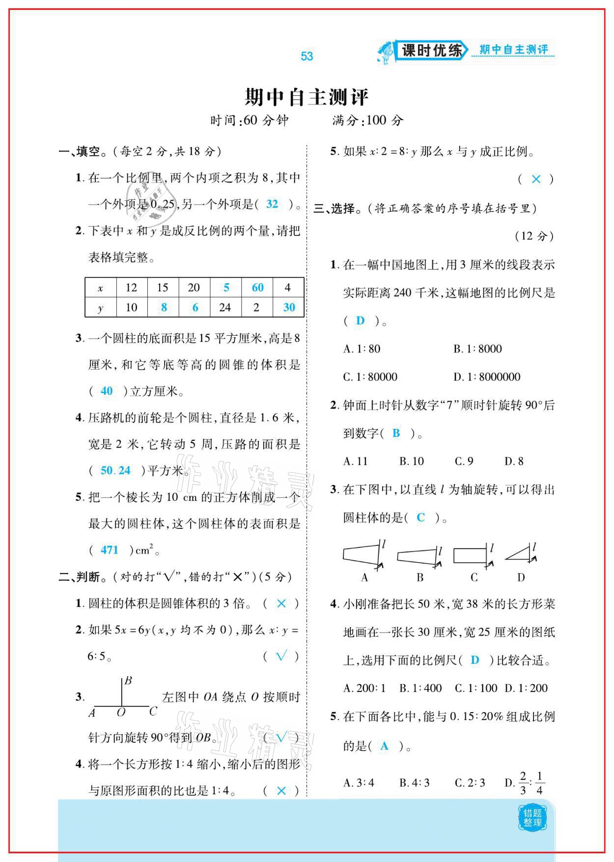 注:目前有些书本章节名称可能整理的还不是很完善,但都是按照顺序排列的,请同学们按照顺序仔细查找。练习册 2021年小学课时优练六年级数学下册北师大版新版 答案主要是用来给同学们做完题方便对答案用的,请勿直接抄袭。