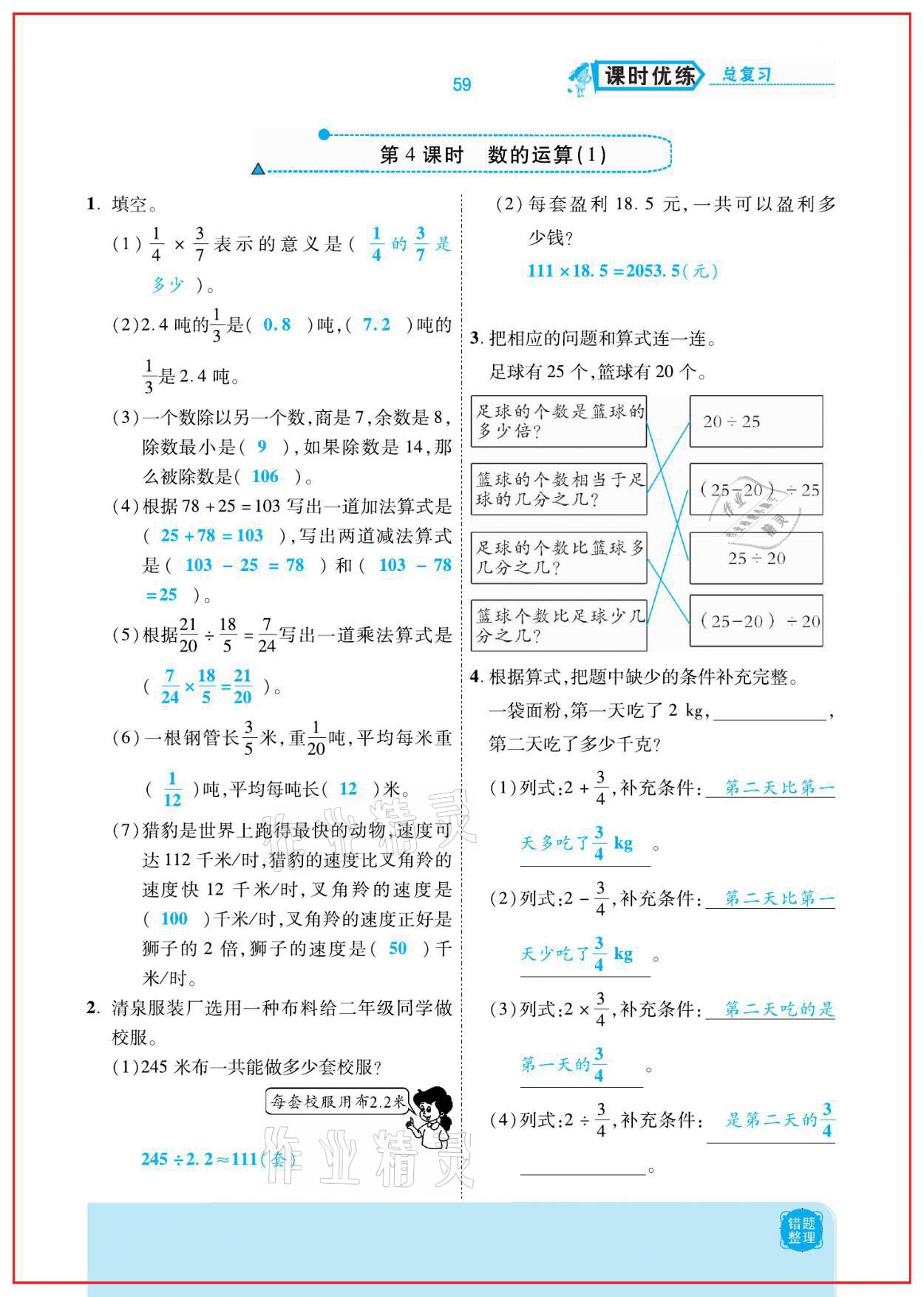 注:目前有些书本章节名称可能整理的还不是很完善,但都是按照顺序排列的,请同学们按照顺序仔细查找。练习册 2021年小学课时优练六年级数学下册北师大版新版 答案主要是用来给同学们做完题方便对答案用的,请勿直接抄袭。