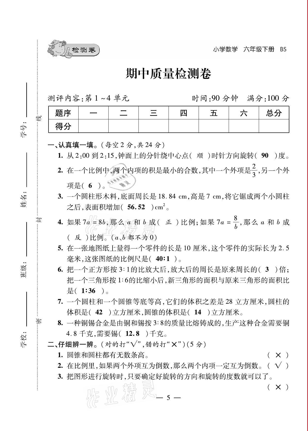 注:目前有些书本章节名称可能整理的还不是很完善,但都是按照顺序排列的,请同学们按照顺序仔细查找。练习册 2021年小学课时优练六年级数学下册北师大版新版 答案主要是用来给同学们做完题方便对答案用的,请勿直接抄袭。