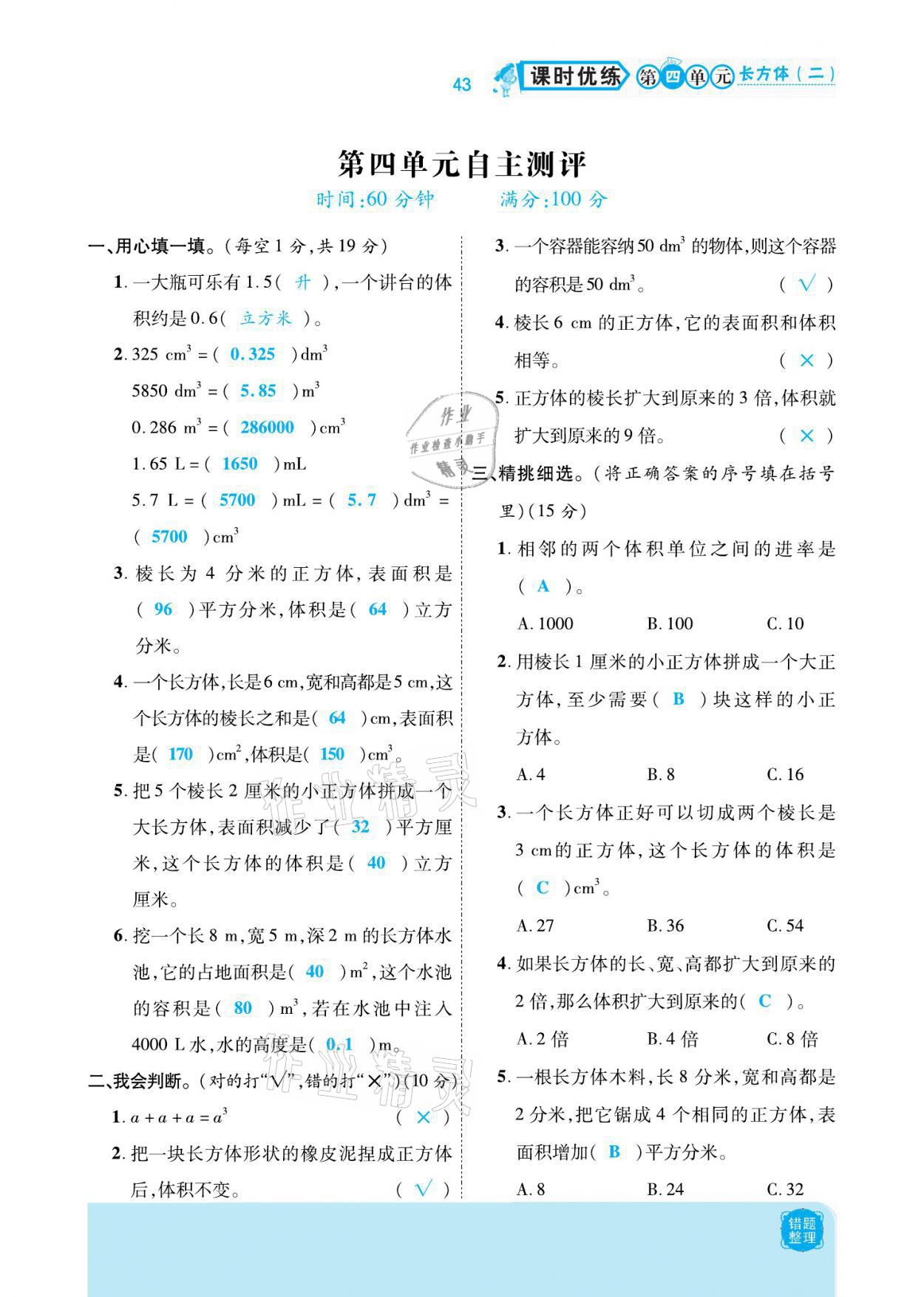 注:目前有些书本章节名称可能整理的还不是很完善,但都是按照顺序排列的,请同学们按照顺序仔细查找。练习册 2021年小学课时优练五年级数学下册北师大版新版 答案主要是用来给同学们做完题方便对答案用的,请勿直接抄袭。