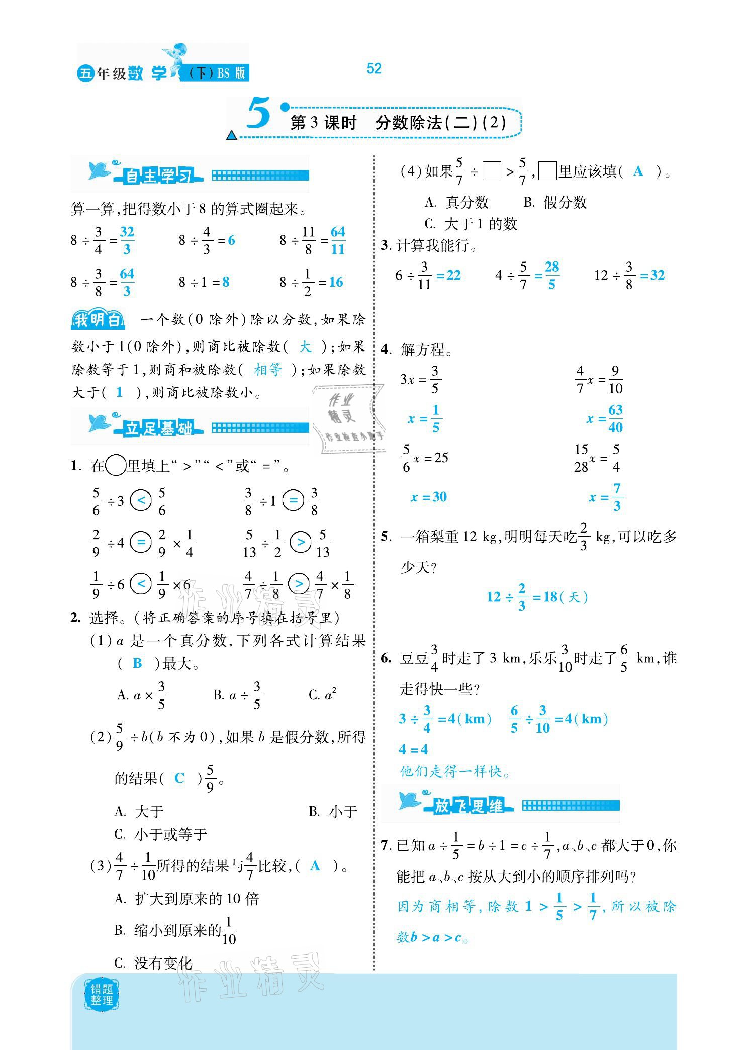 注:目前有些书本章节名称可能整理的还不是很完善,但都是按照顺序排列的,请同学们按照顺序仔细查找。练习册 2021年小学课时优练五年级数学下册北师大版新版 答案主要是用来给同学们做完题方便对答案用的,请勿直接抄袭。