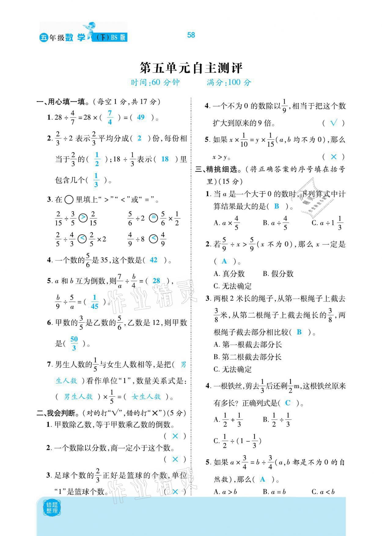 注:目前有些书本章节名称可能整理的还不是很完善,但都是按照顺序排列的,请同学们按照顺序仔细查找。练习册 2021年小学课时优练五年级数学下册北师大版新版 答案主要是用来给同学们做完题方便对答案用的,请勿直接抄袭。
