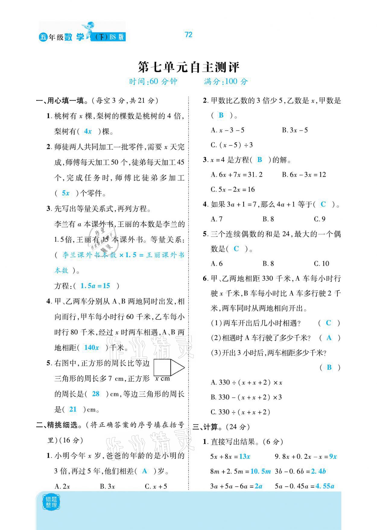 - 参考答案第72页