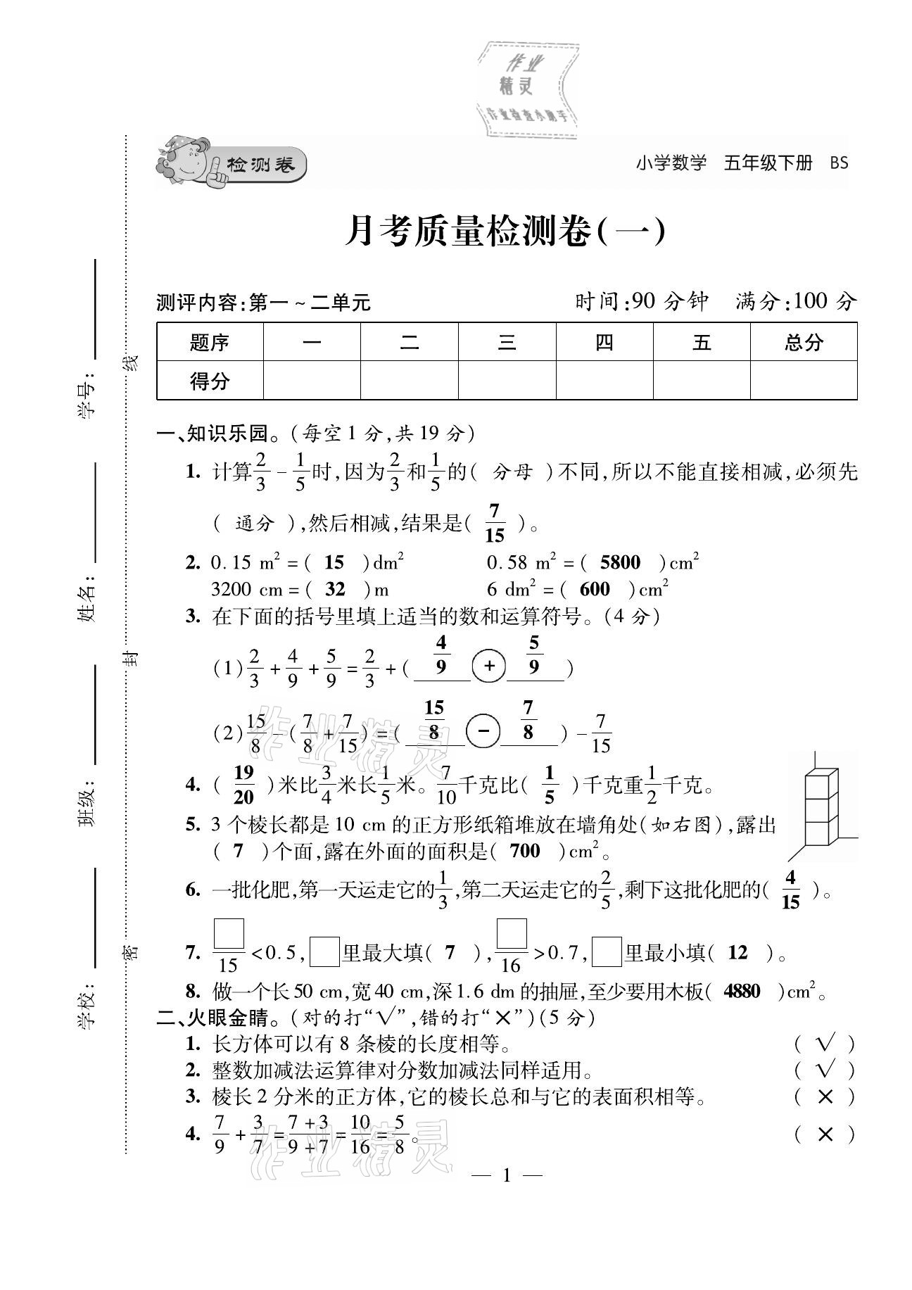 注:目前有些书本章节名称可能整理的还不是很完善,但都是按照顺序排列的,请同学们按照顺序仔细查找。练习册 2021年小学课时优练五年级数学下册北师大版新版 答案主要是用来给同学们做完题方便对答案用的,请勿直接抄袭。