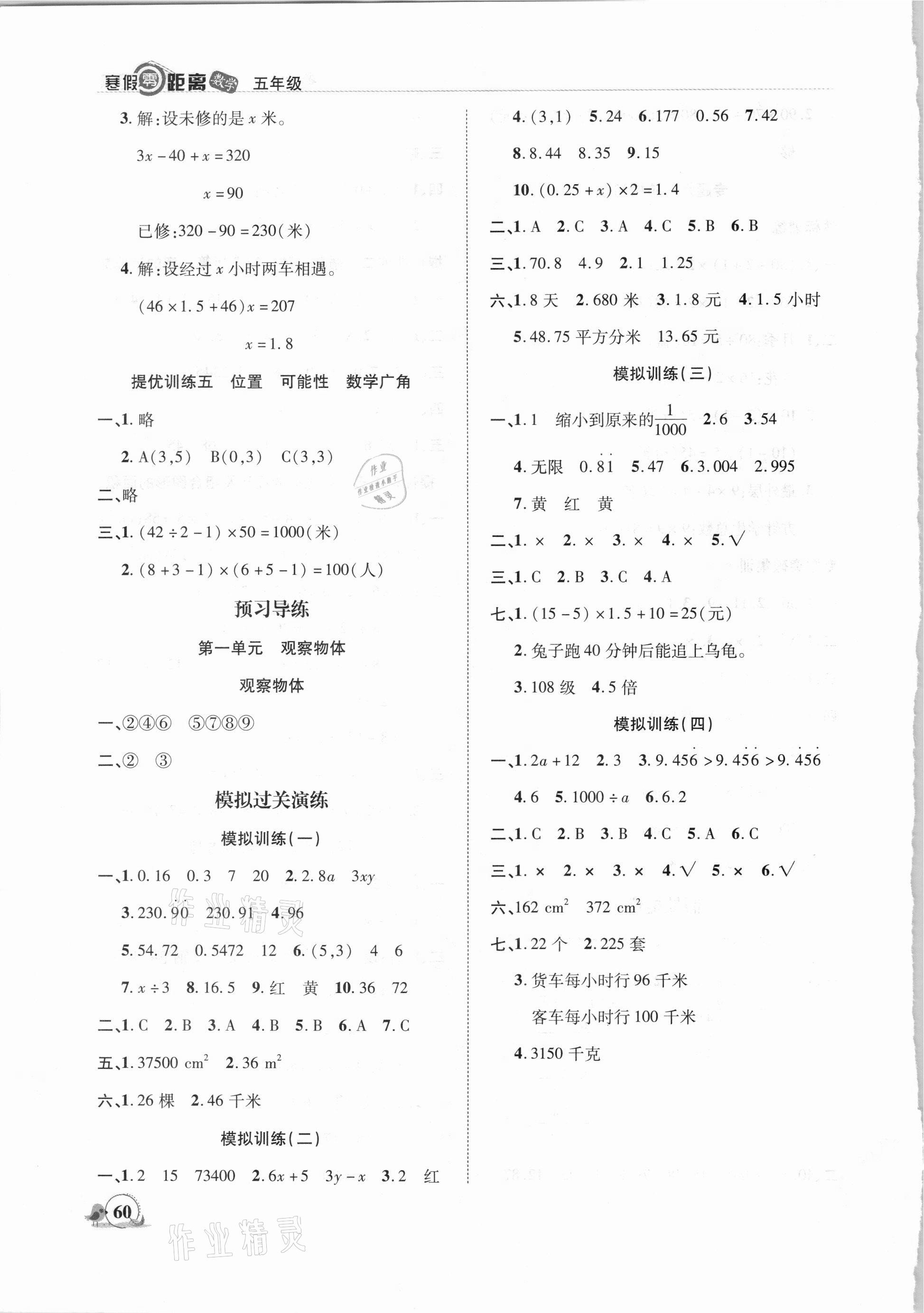 注:目前有些书本章节名称可能整理的还不是很完善,但都是按照顺序排列的,请同学们按照顺序仔细查找。练习册 2021年寒假零距离期末寒假衔接五年级数学人教版 答案主要是用来给同学们做完题方便对答案用的,请勿直接抄袭。