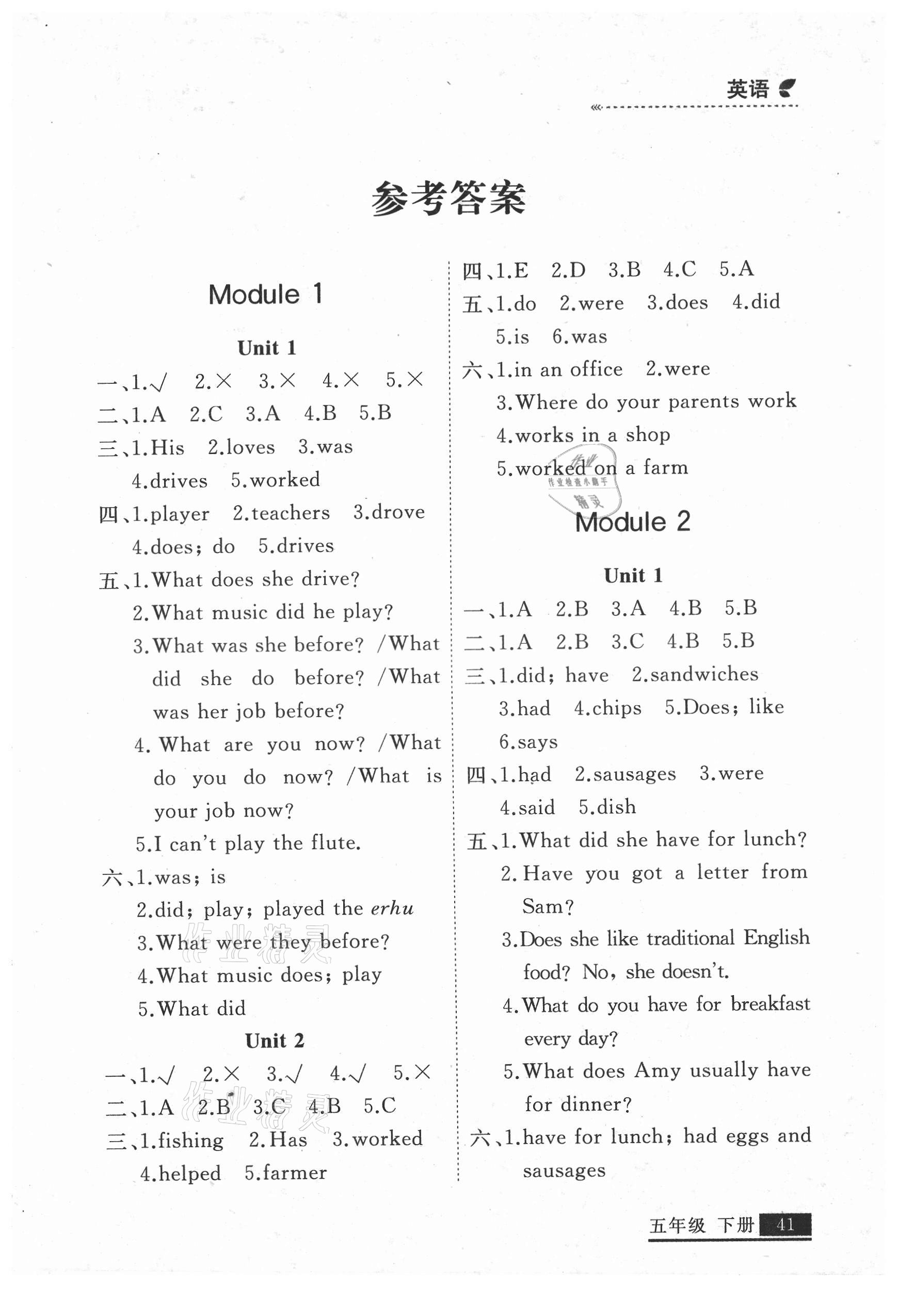 注:目前有些书本章节名称可能整理的还不是很完善,但都是按照顺序排列的,请同学们按照顺序仔细查找。练习册 2021年培优计划五年级英语下册外研版延边大学出版社 答案主要是用来给同学们做完题方便对答案用的,请勿直接抄袭。