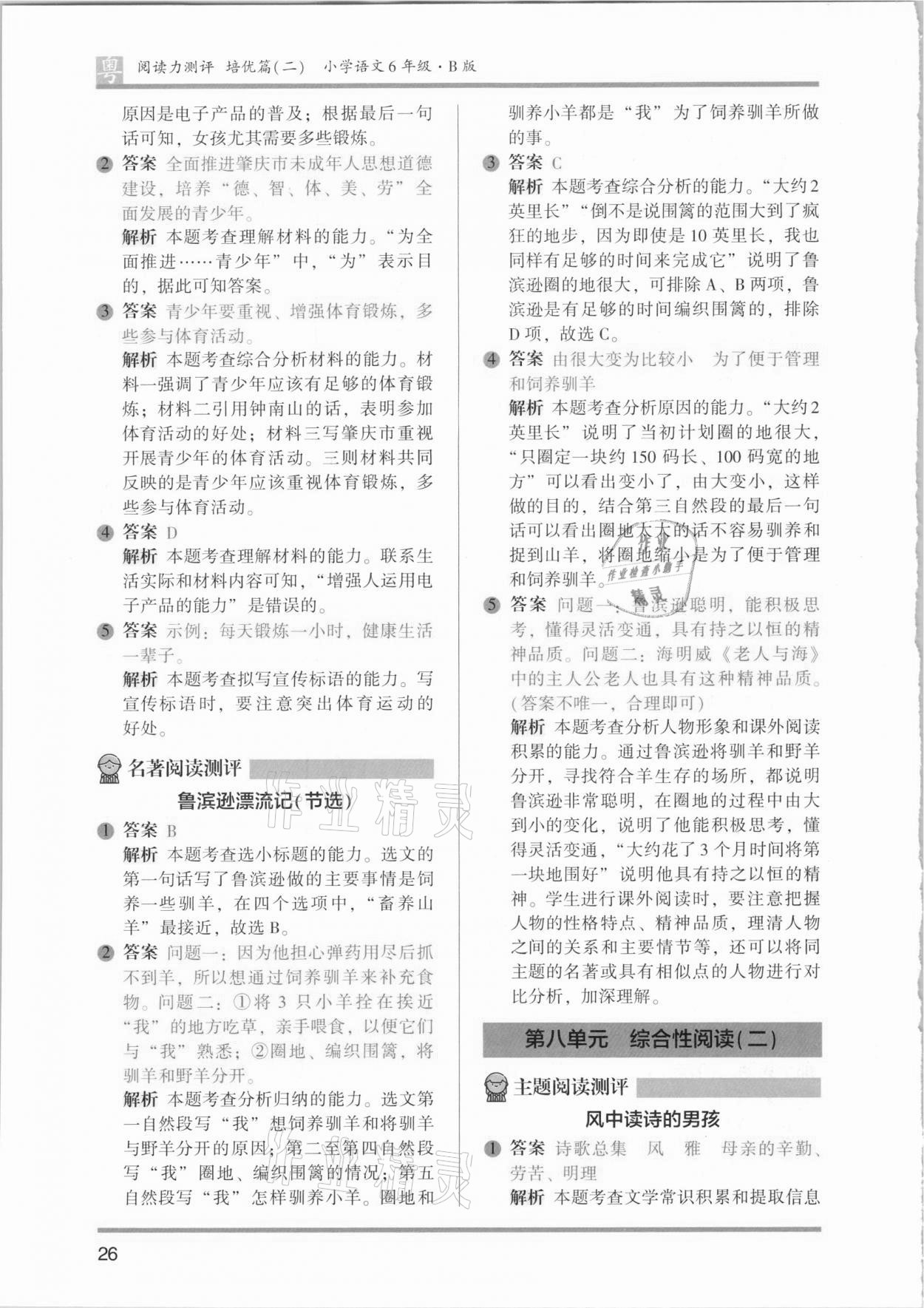 注:目前有些书本章节名称可能整理的还不是很完善,但都是按照顺序排列的,请同学们按照顺序仔细查找。练习册 2021年木头马阅读力测评小学语文六年级B版广东专版 答案主要是用来给同学们做完题方便对答案用的,请勿直接抄袭。