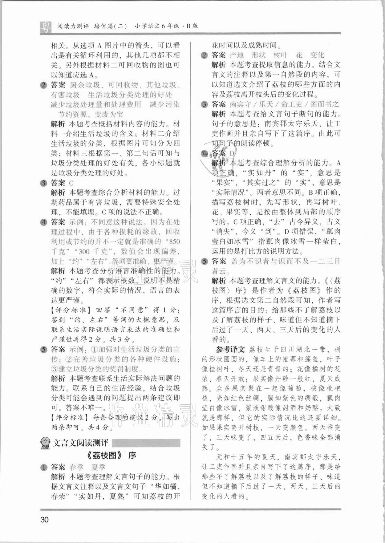 注:目前有些书本章节名称可能整理的还不是很完善,但都是按照顺序排列的,请同学们按照顺序仔细查找。练习册 2021年木头马阅读力测评小学语文六年级B版广东专版 答案主要是用来给同学们做完题方便对答案用的,请勿直接抄袭。