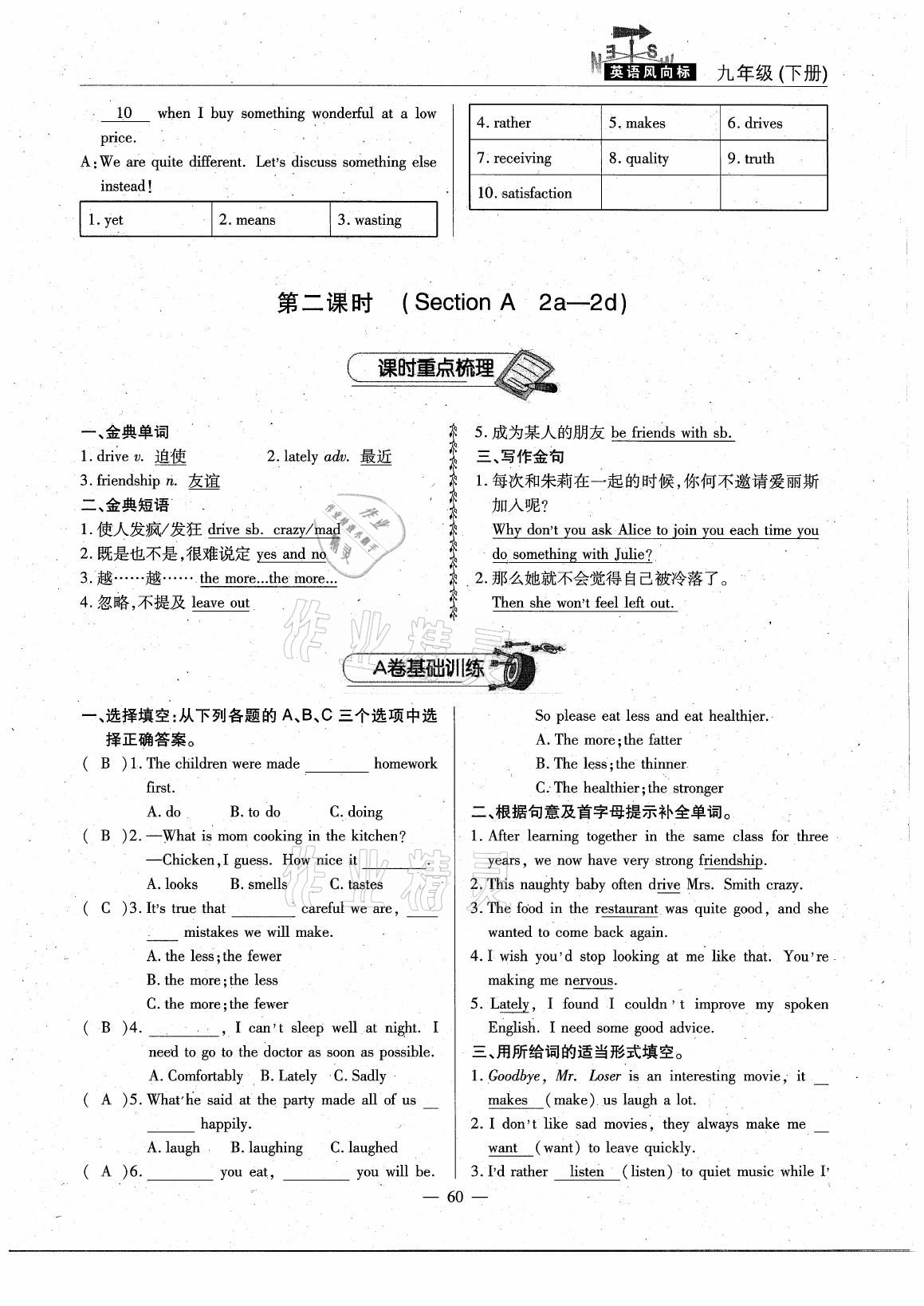 注:目前有些书本章节名称可能整理的还不是很完善,但都是按照顺序排列的,请同学们按照顺序仔细查找。练习册 2021年英语风向标九年级下册人教版蓉城专版 答案主要是用来给同学们做完题方便对答案用的,请勿直接抄袭。