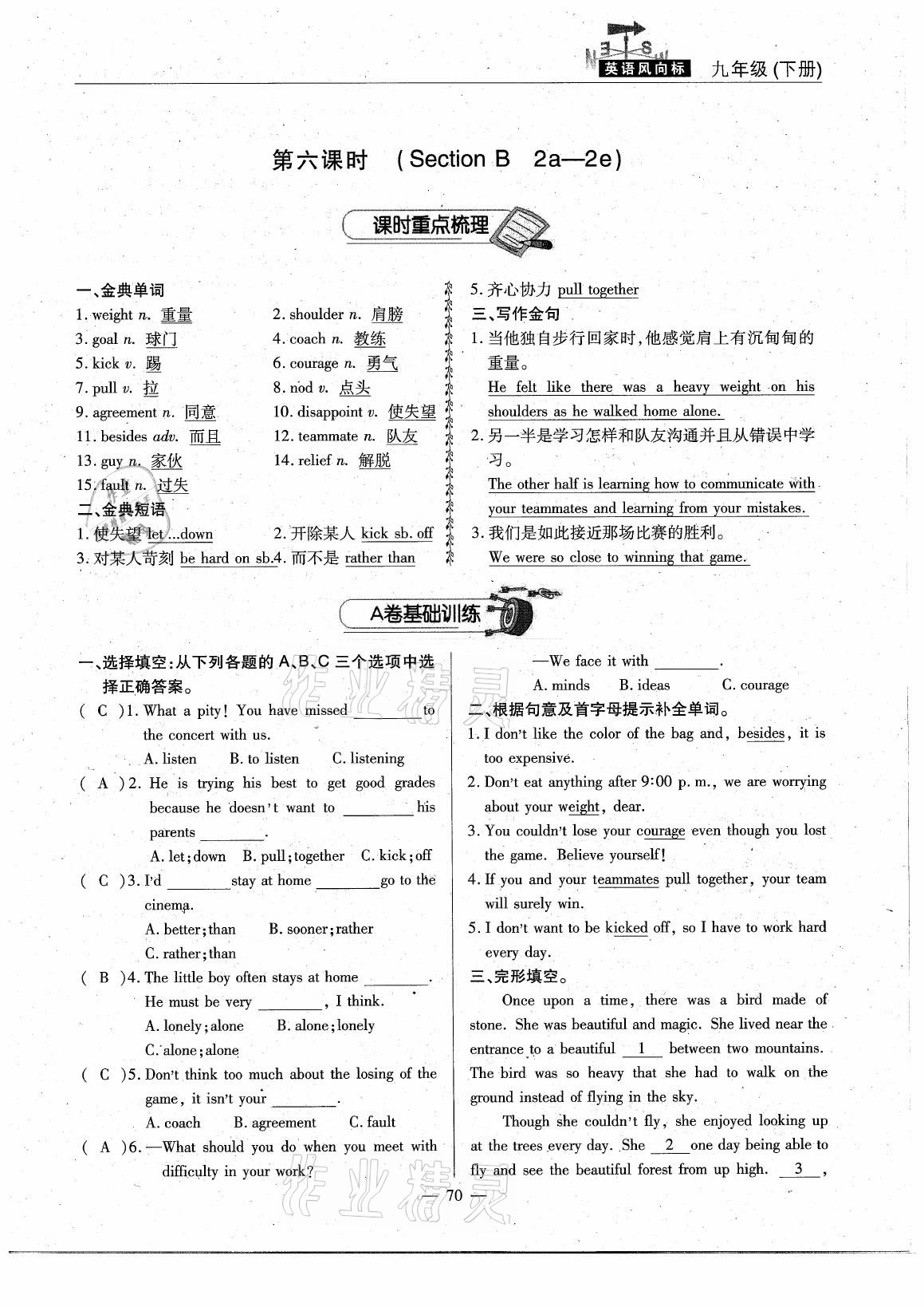 注:目前有些书本章节名称可能整理的还不是很完善,但都是按照顺序排列的,请同学们按照顺序仔细查找。练习册 2021年英语风向标九年级下册人教版蓉城专版 答案主要是用来给同学们做完题方便对答案用的,请勿直接抄袭。