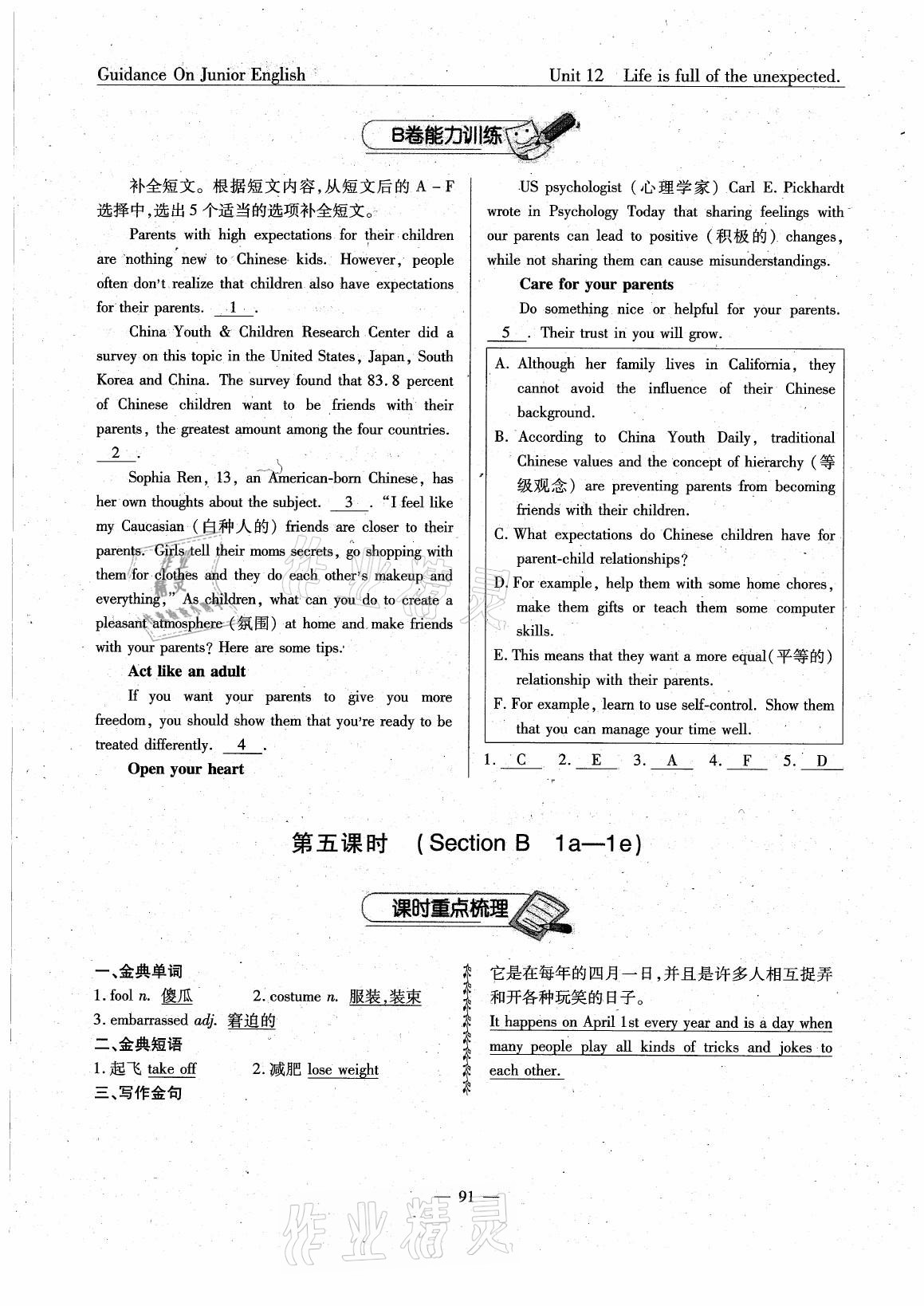 - 参考答案第91页