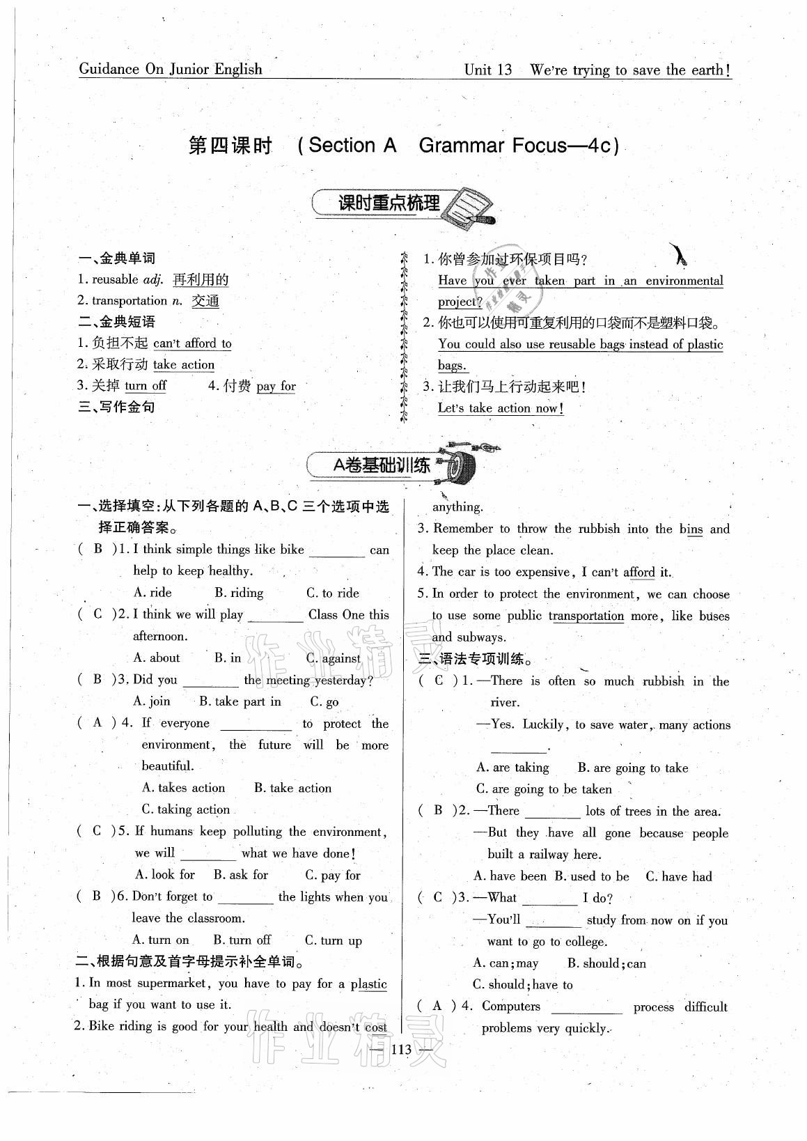 注:目前有些书本章节名称可能整理的还不是很完善,但都是按照顺序排列的,请同学们按照顺序仔细查找。练习册 2021年英语风向标九年级下册人教版蓉城专版 答案主要是用来给同学们做完题方便对答案用的,请勿直接抄袭。