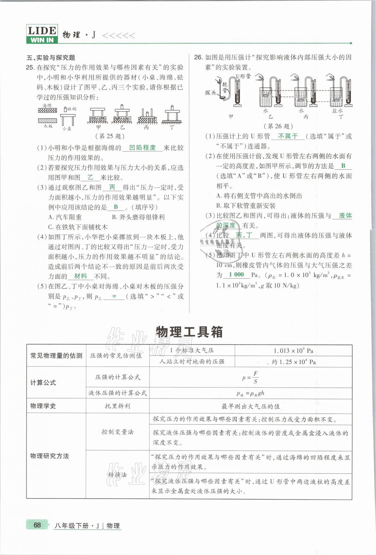 注:目前有些书本章节名称可能整理的还不是很完善,但都是按照顺序排列的,请同学们按照顺序仔细查找。练习册 2021年高分突破课时达标讲练测八年级物理下册教科版 答案主要是用来给同学们做完题方便对答案用的,请勿直接抄袭。