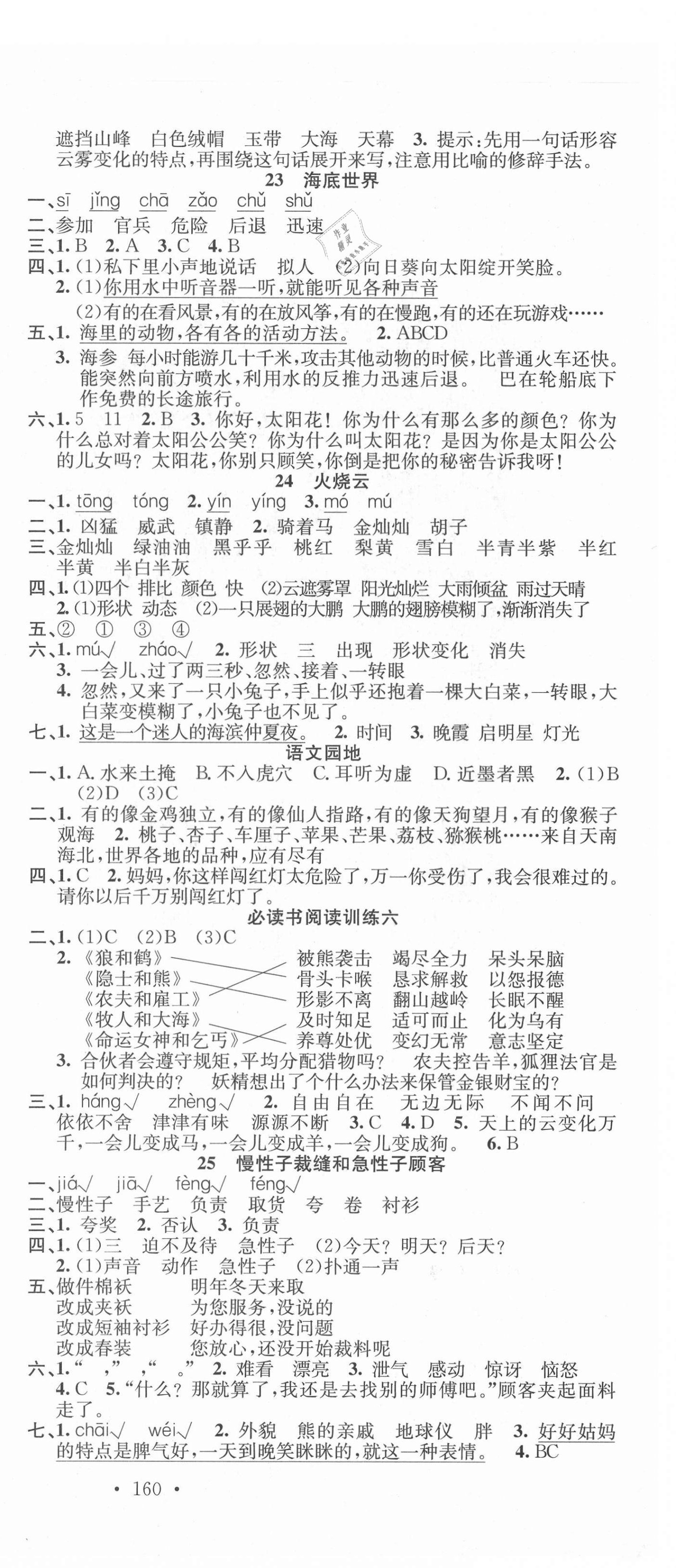 注:目前有些书本章节名称可能整理的还不是很完善,但都是按照顺序排列的,请同学们按照顺序仔细查找。练习册 2021年名校课堂三年级语文下册人教版1福建专版 答案主要是用来给同学们做完题方便对答案用的,请勿直接抄袭。