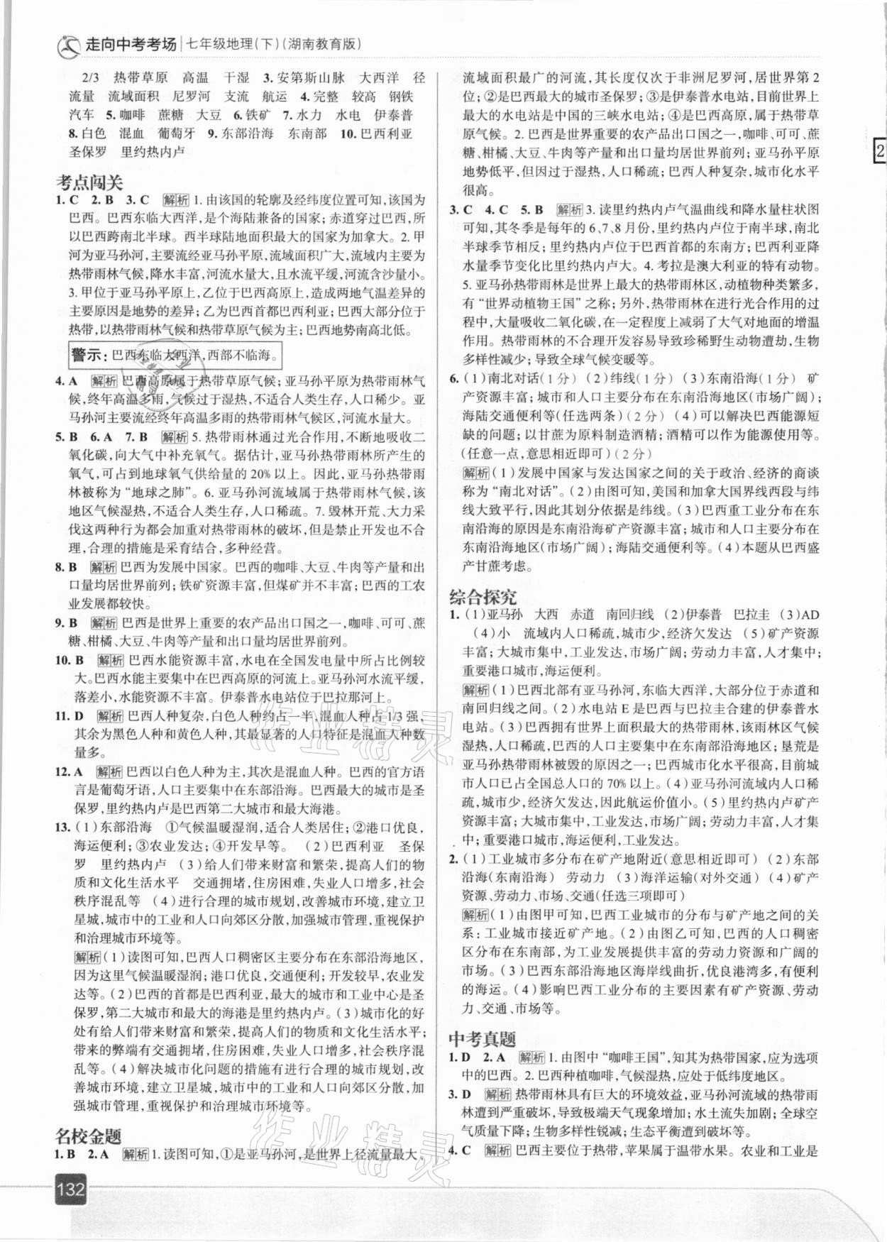 注:目前有些书本章节名称可能整理的还不是很完善,但都是按照顺序排列的,请同学们按照顺序仔细查找。练习册 2021年走向中考考场七年级地理下册湖南教育版 答案主要是用来给同学们做完题方便对答案用的,请勿直接抄袭。