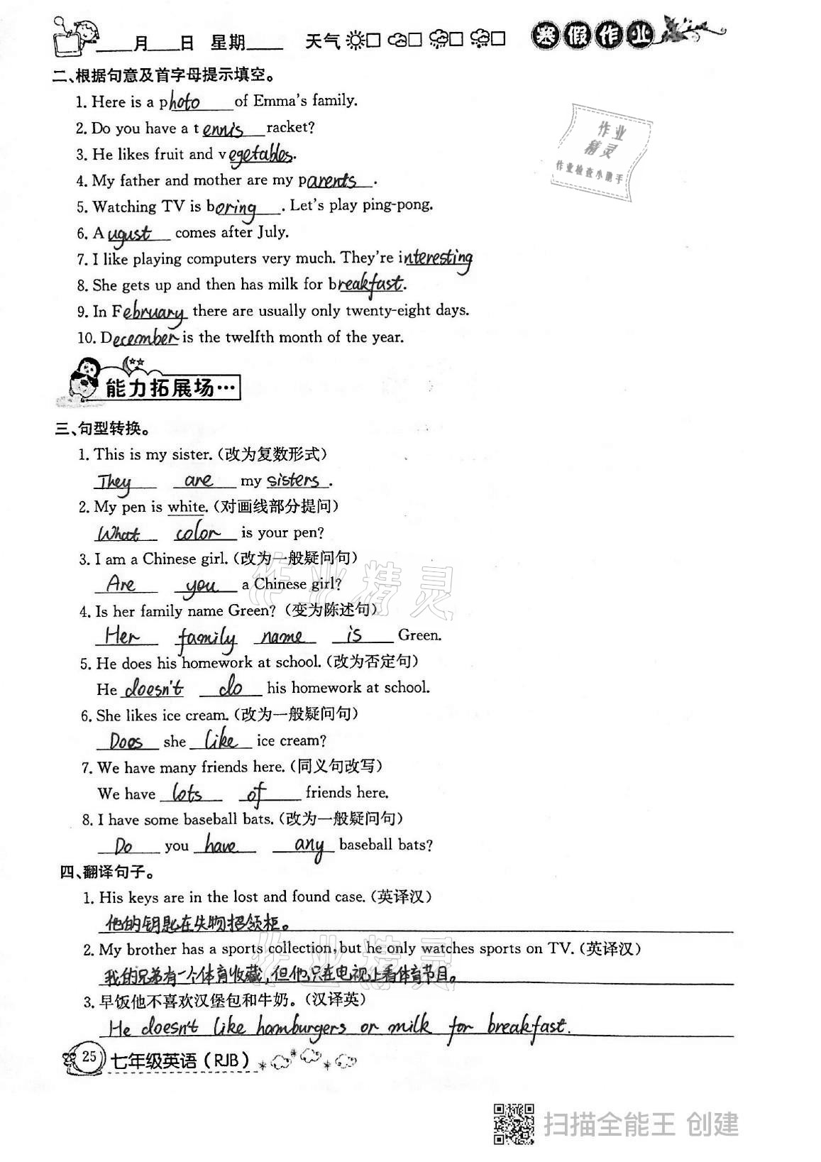 注:目前有些书本章节名称可能整理的还不是很完善,但都是按照顺序排列的,请同学们按照顺序仔细查找。练习册 2021年快乐假期寒假作业七年级英语人教版延边教育出版社 答案主要是用来给同学们做完题方便对答案用的,请勿直接抄袭。