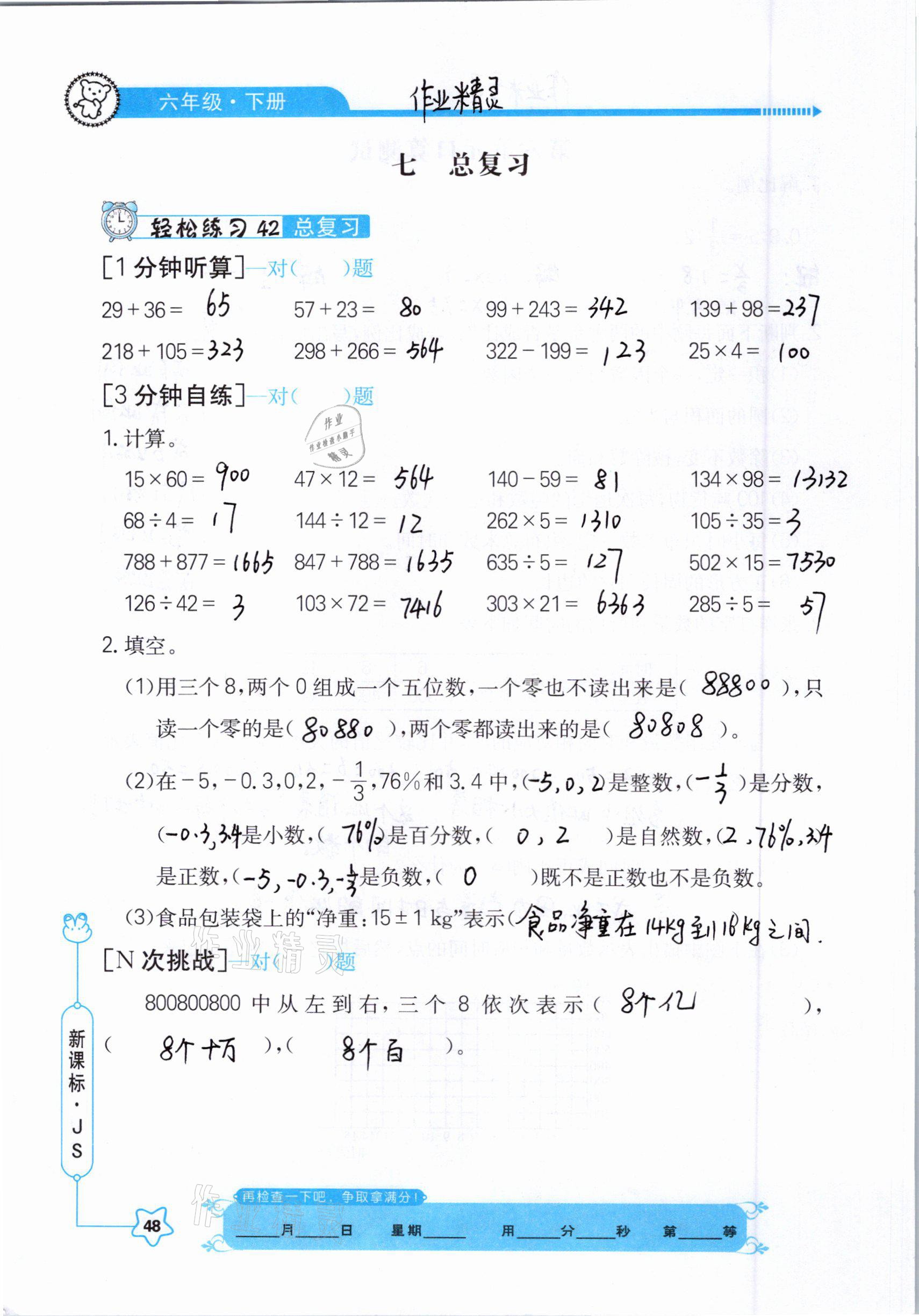 注:目前有些书本章节名称可能整理的还不是很完善,但都是按照顺序排列的,请同学们按照顺序仔细查找。练习册 2021年口算心算快速算六年级数学下册江苏版 答案主要是用来给同学们做完题方便对答案用的,请勿直接抄袭。