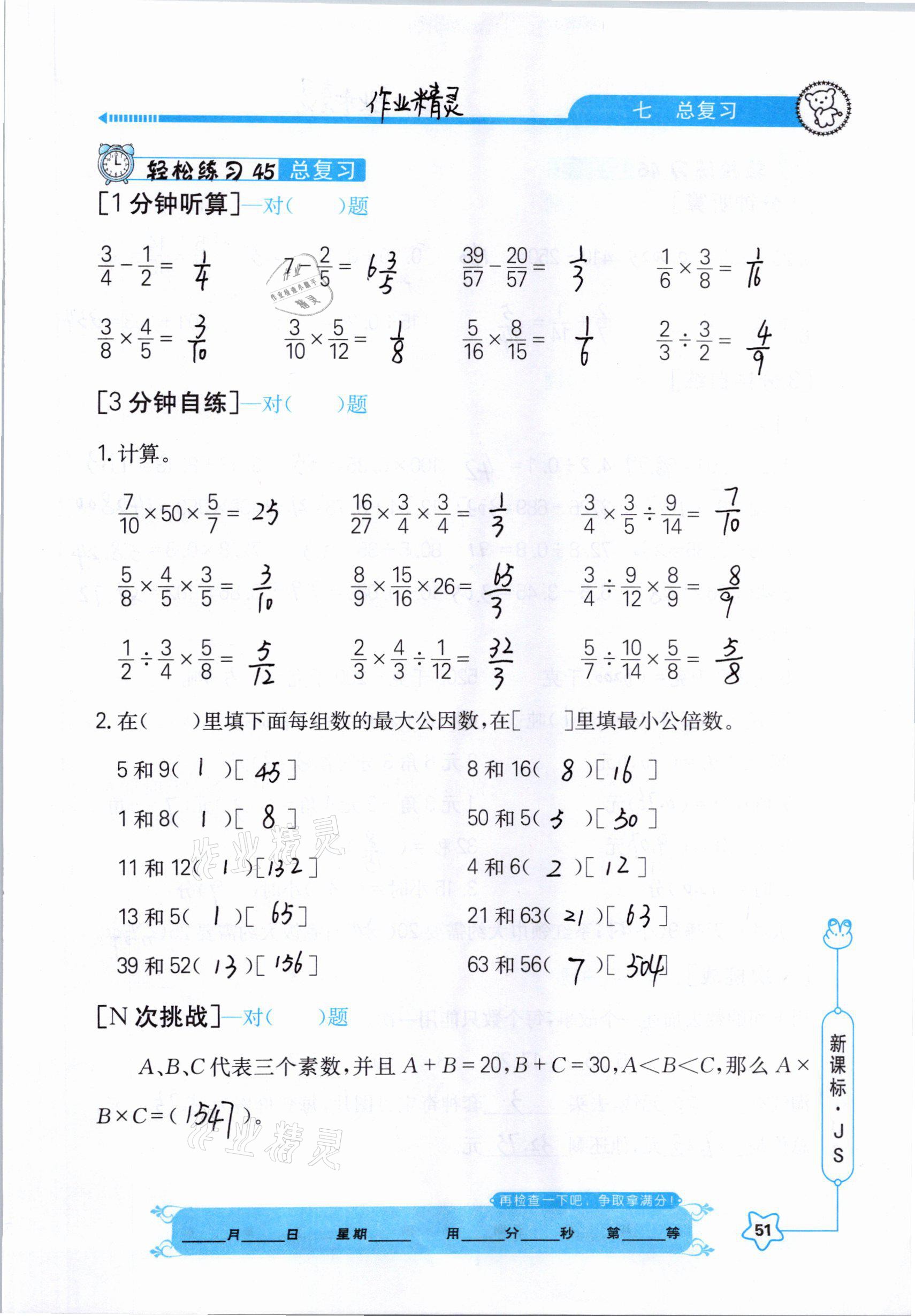 注:目前有些书本章节名称可能整理的还不是很完善,但都是按照顺序排列的,请同学们按照顺序仔细查找。练习册 2021年口算心算快速算六年级数学下册江苏版 答案主要是用来给同学们做完题方便对答案用的,请勿直接抄袭。