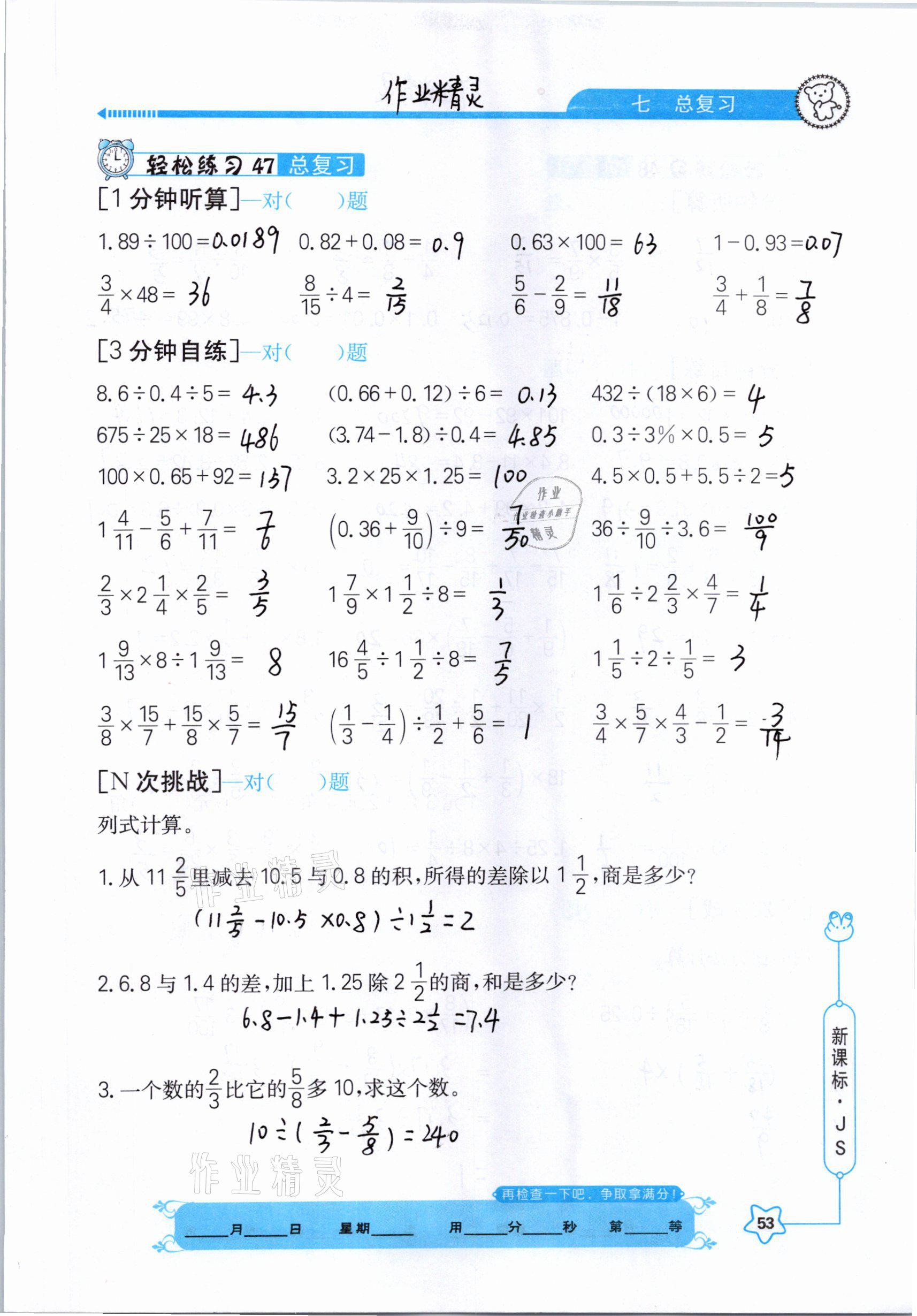 注:目前有些书本章节名称可能整理的还不是很完善,但都是按照顺序排列的,请同学们按照顺序仔细查找。练习册 2021年口算心算快速算六年级数学下册江苏版 答案主要是用来给同学们做完题方便对答案用的,请勿直接抄袭。