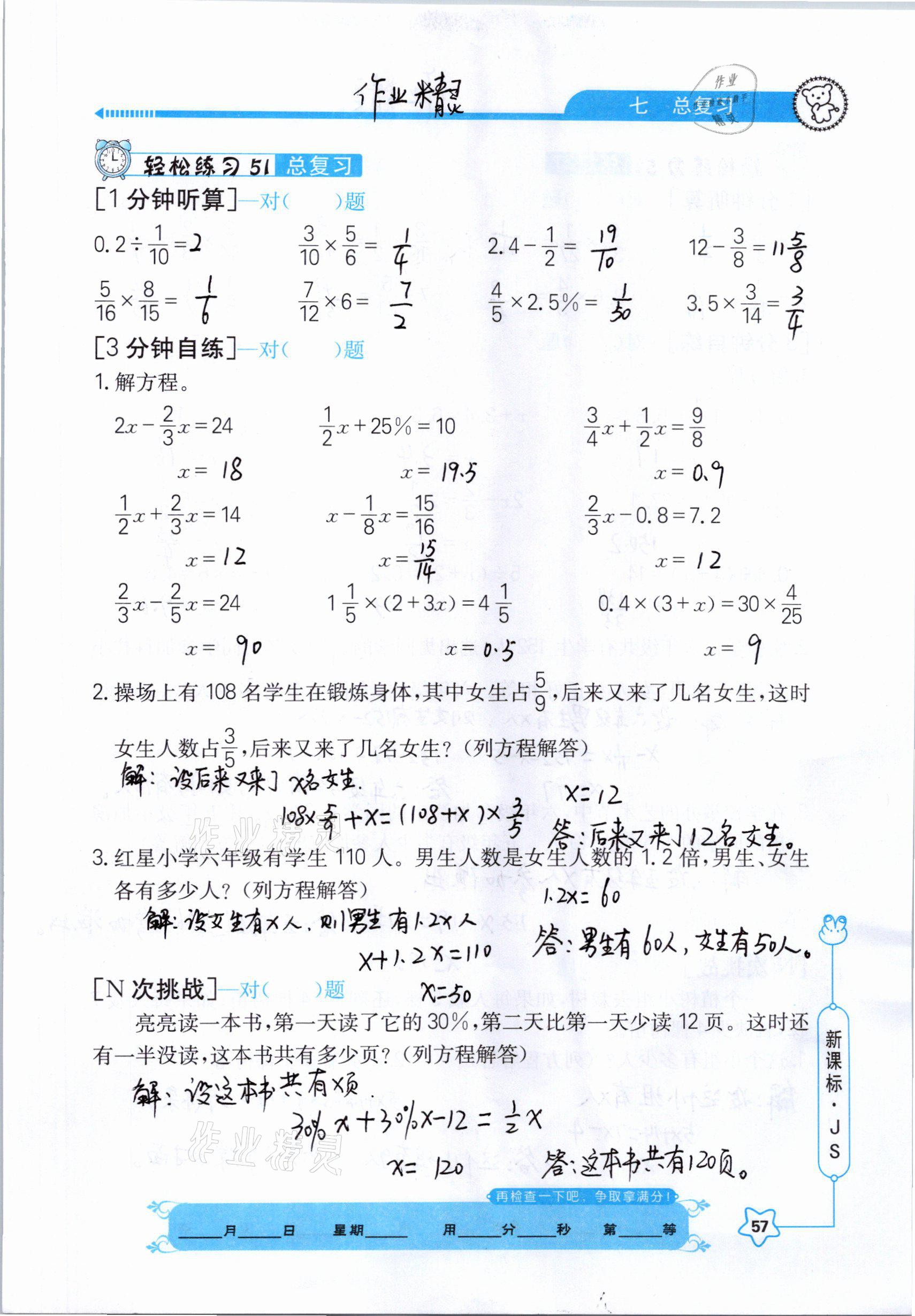 注:目前有些书本章节名称可能整理的还不是很完善,但都是按照顺序排列的,请同学们按照顺序仔细查找。练习册 2021年口算心算快速算六年级数学下册江苏版 答案主要是用来给同学们做完题方便对答案用的,请勿直接抄袭。