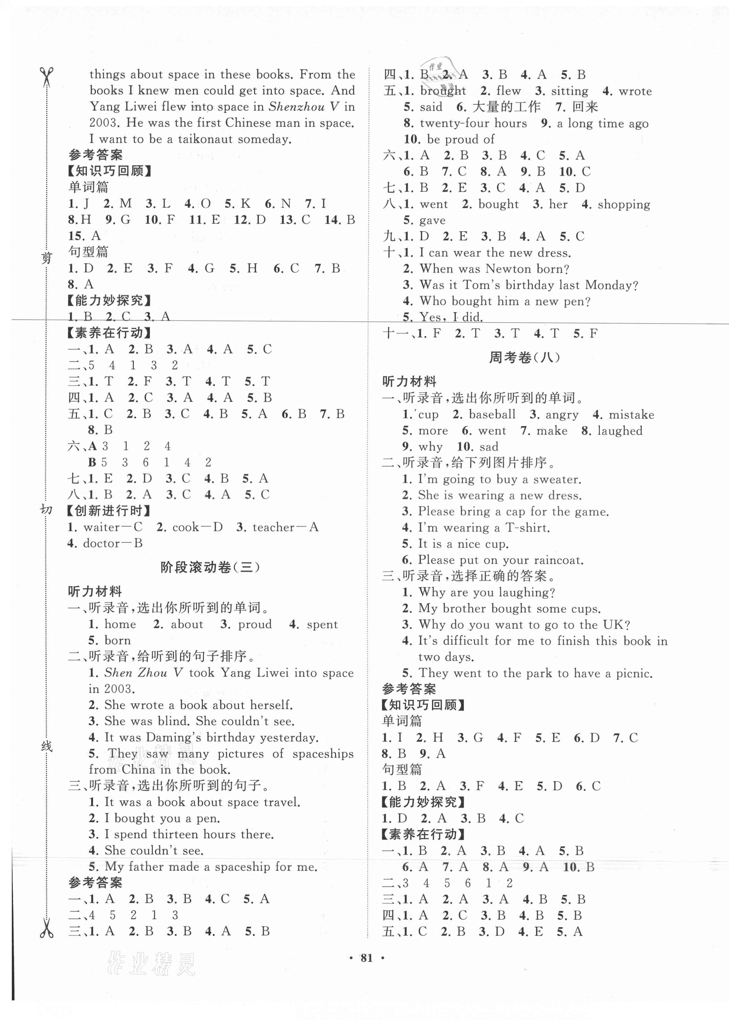注:目前有些书本章节名称可能整理的还不是很完善,但都是按照顺序排列的,请同学们按照顺序仔细查找。练习册 2021年小学同步练习册分层卷六年级英语下册外研版 答案主要是用来给同学们做完题方便对答案用的,请勿直接抄袭。