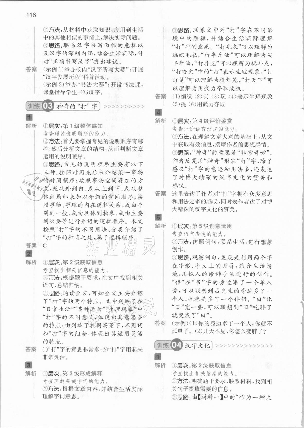 注:目前有些书本章节名称可能整理的还不是很完善,但都是按照顺序排列的,请同学们按照顺序仔细查找。练习册 2021年一本阅读能力训练100分五年级语文B版 答案主要是用来给同学们做完题方便对答案用的,请勿直接抄袭。
