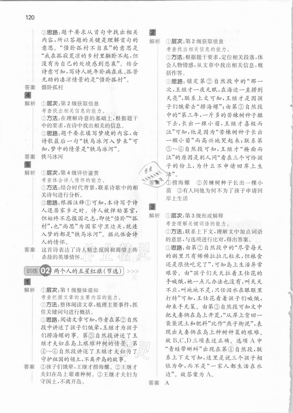 注:目前有些书本章节名称可能整理的还不是很完善,但都是按照顺序排列的,请同学们按照顺序仔细查找。练习册 2021年一本阅读能力训练100分五年级语文B版 答案主要是用来给同学们做完题方便对答案用的,请勿直接抄袭。
