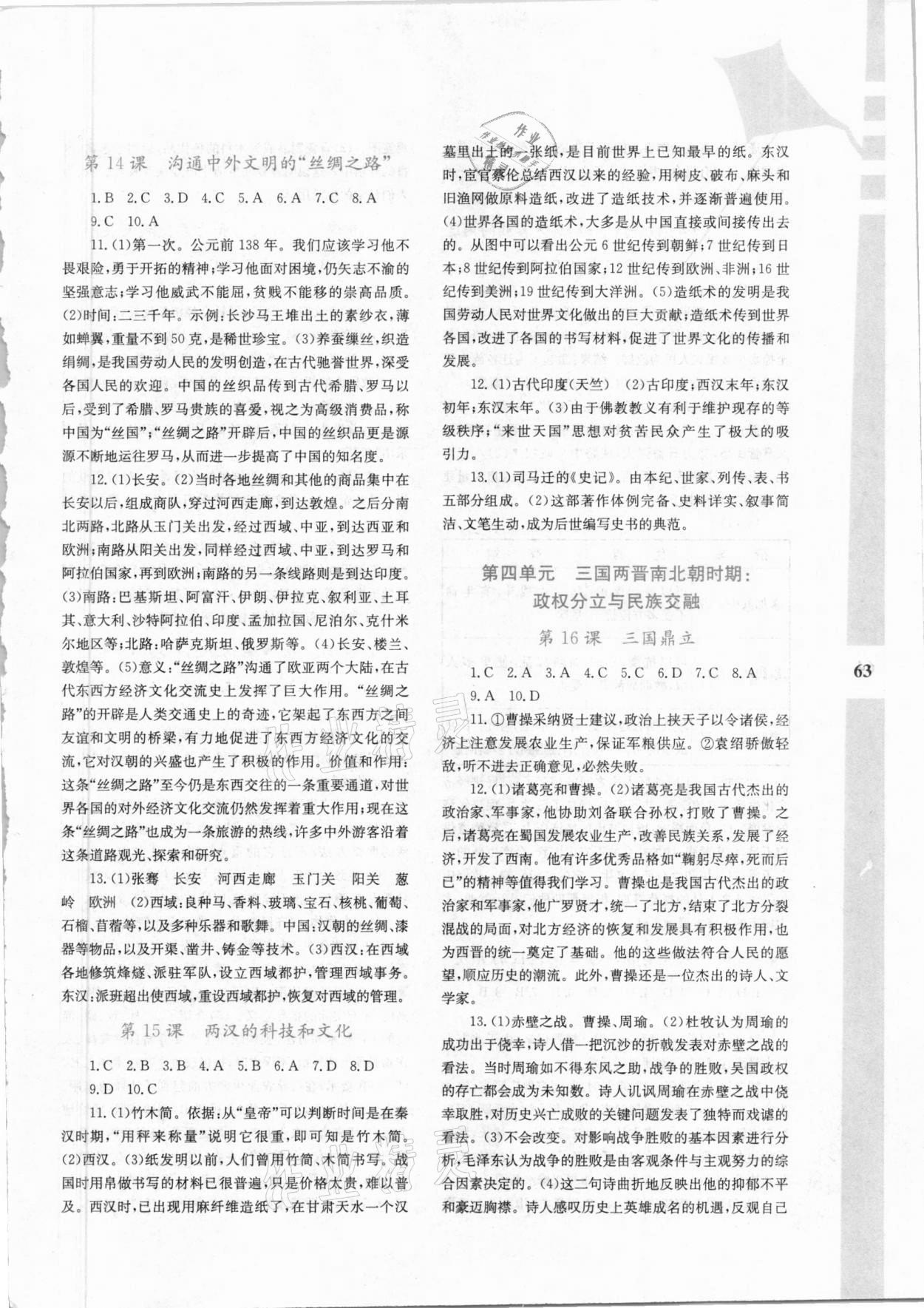 注:目前有些书本章节名称可能整理的还不是很完善,但都是按照顺序排列的,请同学们按照顺序仔细查找。练习册 2021年寒假作业与生活七年级历史陕西人民教育出版社 答案主要是用来给同学们做完题方便对答案用的,请勿直接抄袭。