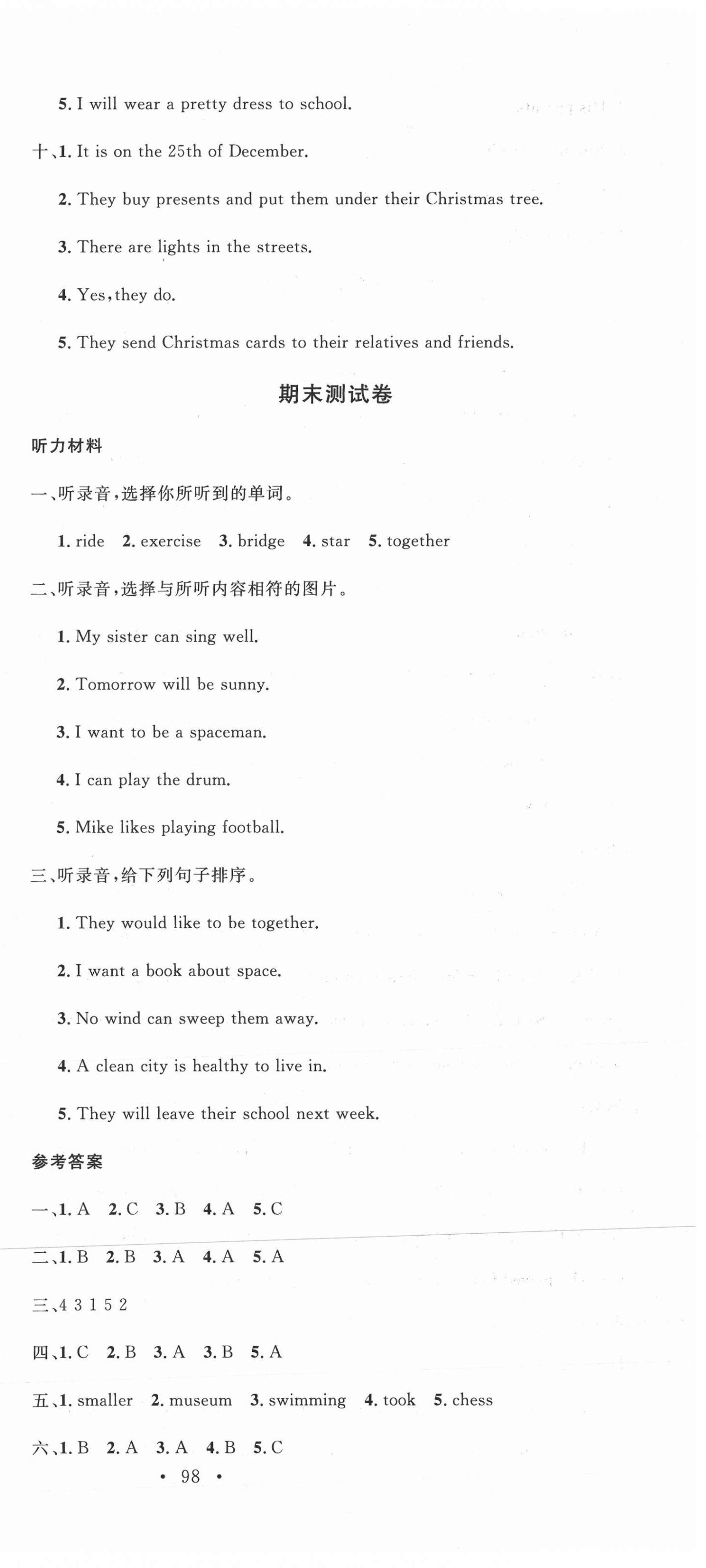 注:目前有些书本章节名称可能整理的还不是很完善,但都是按照顺序排列的,请同学们按照顺序仔细查找。练习册 2021年名校课堂六年级英语下册湘少版3 答案主要是用来给同学们做完题方便对答案用的,请勿直接抄袭。