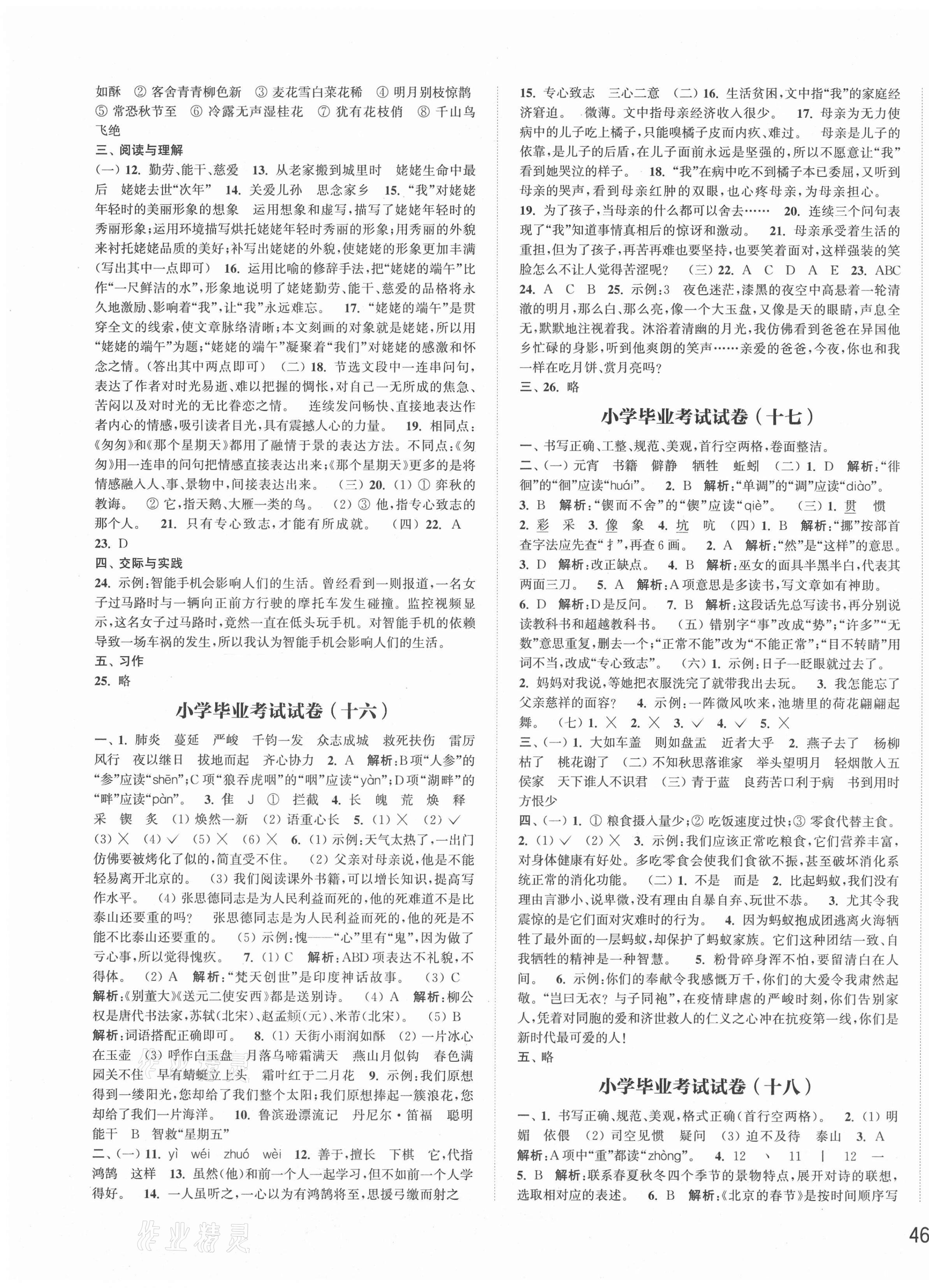 注:目前有些书本章节名称可能整理的还不是很完善,但都是按照顺序排列的,请同学们按照顺序仔细查找。练习册 2021年小学毕业考试试卷精编语文 答案主要是用来给同学们做完题方便对答案用的,请勿直接抄袭。