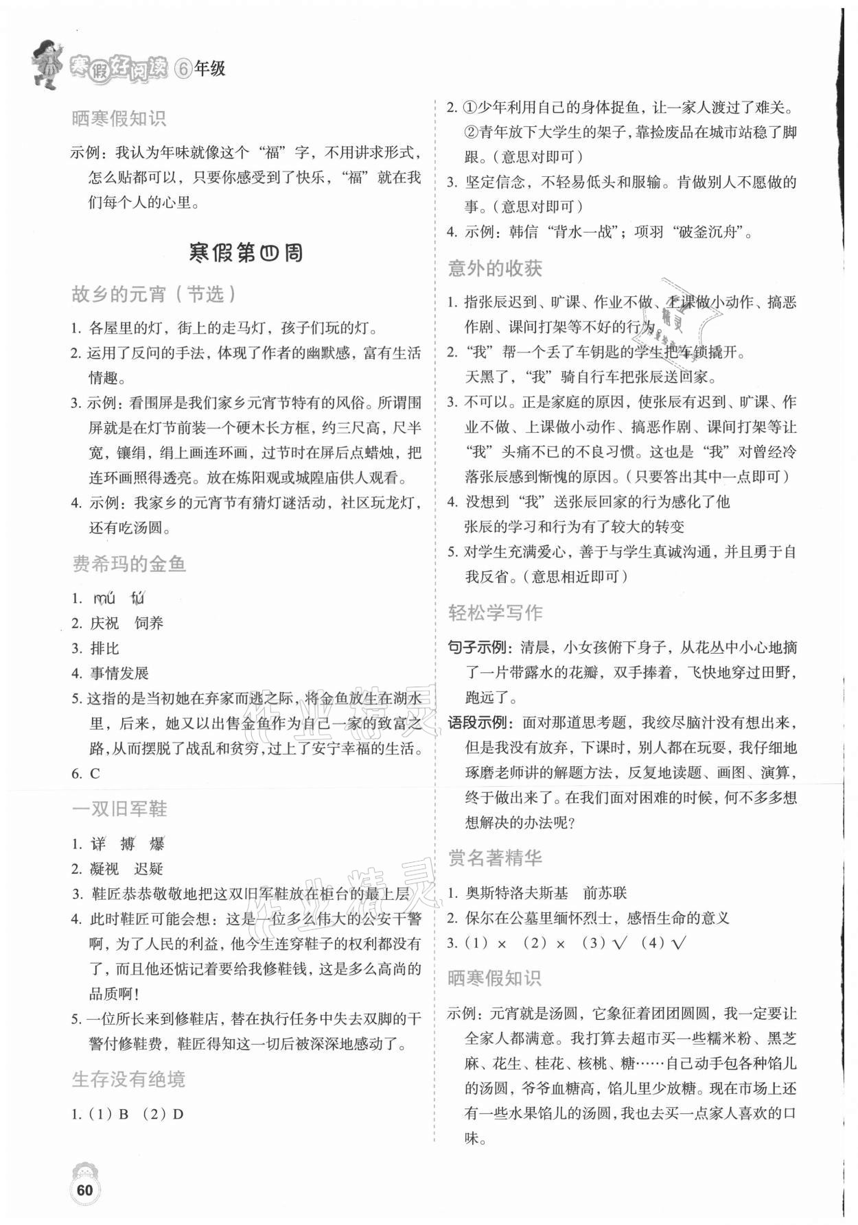 注:目前有些书本章节名称可能整理的还不是很完善,但都是按照顺序排列的,请同学们按照顺序仔细查找。练习册 2021年寒假好阅读六年级英语人教版云南美术出版社 答案主要是用来给同学们做完题方便对答案用的,请勿直接抄袭。