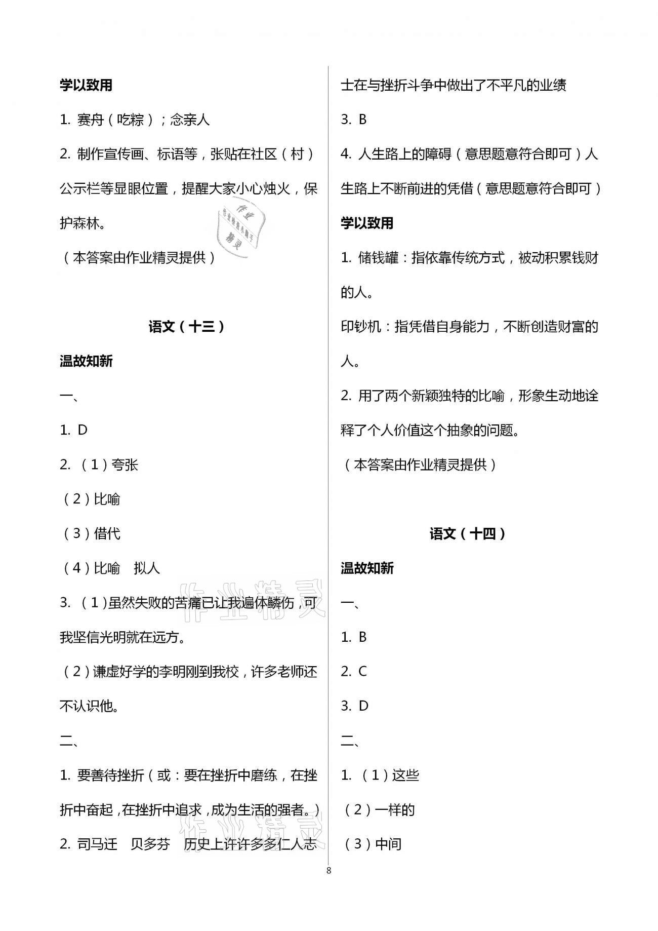 注:目前有些书本章节名称可能整理的还不是很完善,但都是按照顺序排列的,请同学们按照顺序仔细查找。练习册 2021年天舟文化精彩寒假九年级语文人教版团结出版社 答案主要是用来给同学们做完题方便对答案用的,请勿直接抄袭。