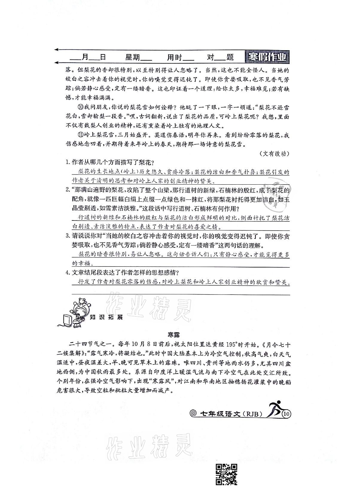 2021年快乐假期寒假作业七年级语文人教版延边教育出版社