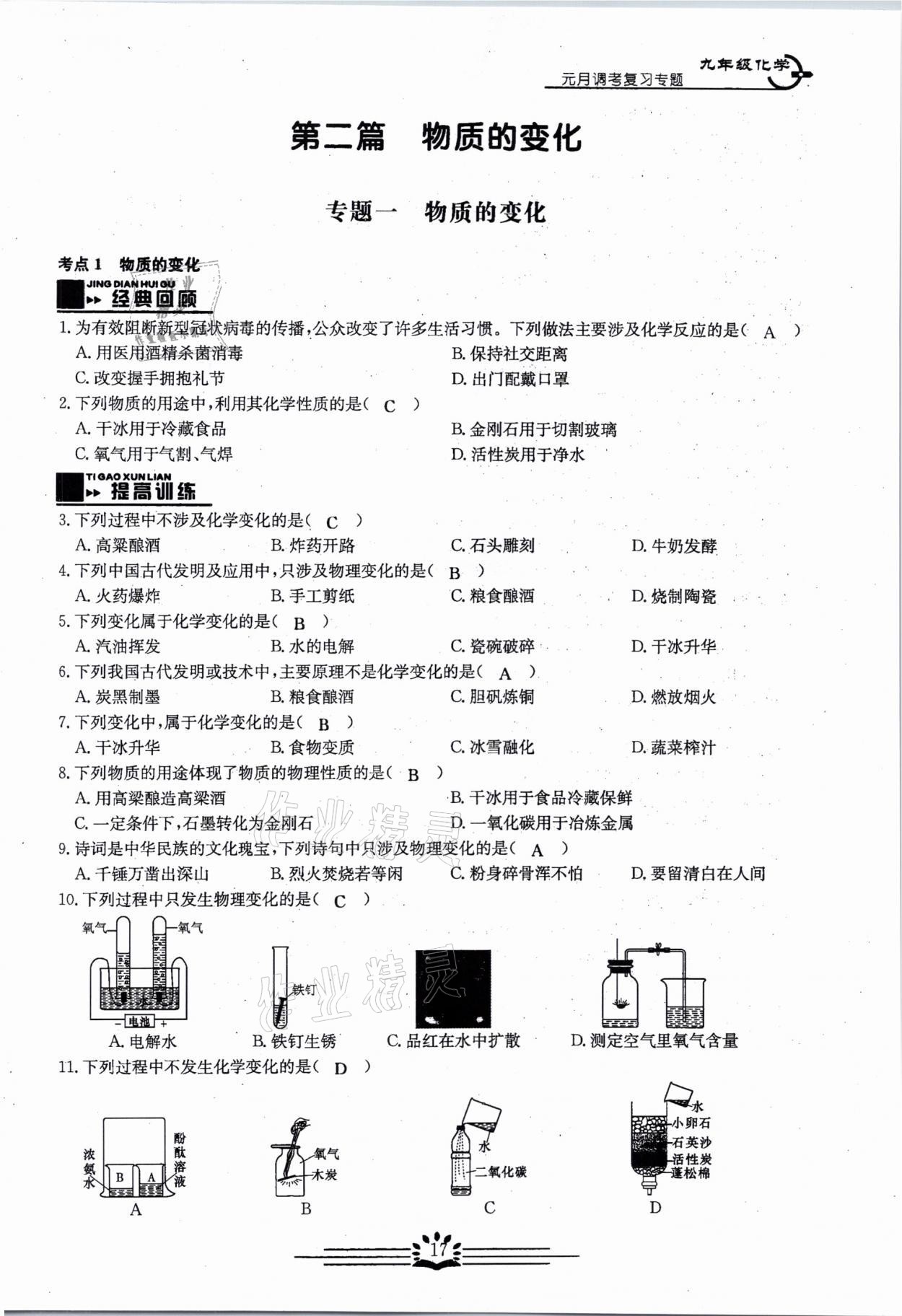 注:目前有些书本章节名称可能整理的还不是很完善,但都是按照顺序排列的,请同学们按照顺序仔细查找。练习册 2021年思维新观察元调专题复习化学中考人教版 答案主要是用来给同学们做完题方便对答案用的,请勿直接抄袭。