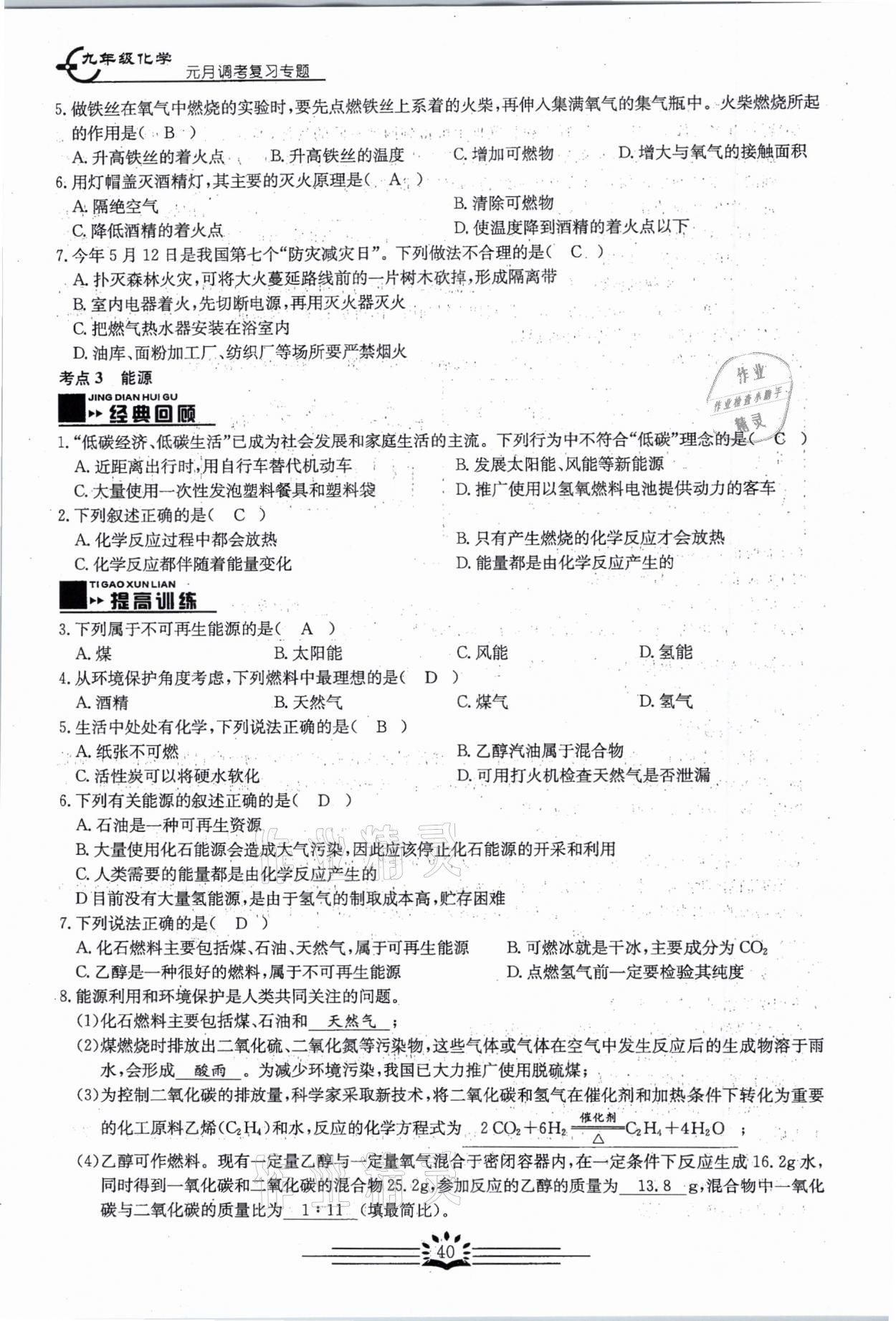 注:目前有些书本章节名称可能整理的还不是很完善,但都是按照顺序排列的,请同学们按照顺序仔细查找。练习册 2021年思维新观察元调专题复习化学中考人教版 答案主要是用来给同学们做完题方便对答案用的,请勿直接抄袭。