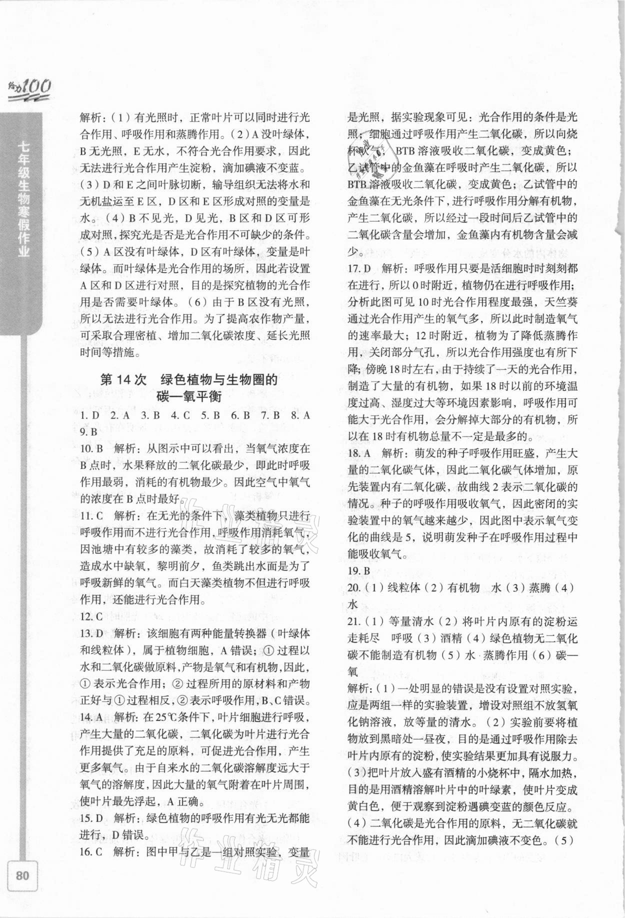 2021年鑫浪传媒给力100寒假作业七年级生物