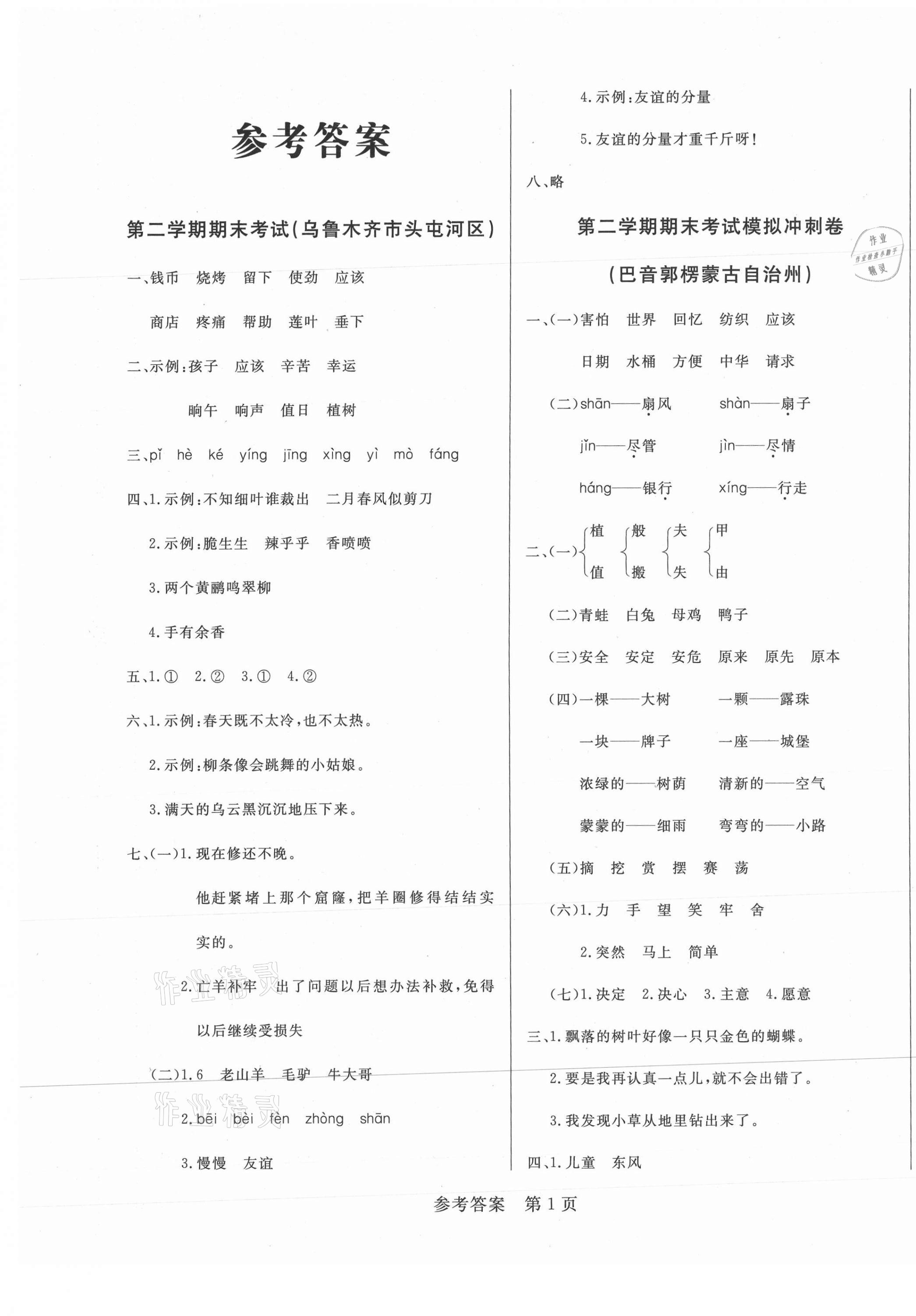 《2021年黄冈名卷二年级语文下册人教版新疆专版》