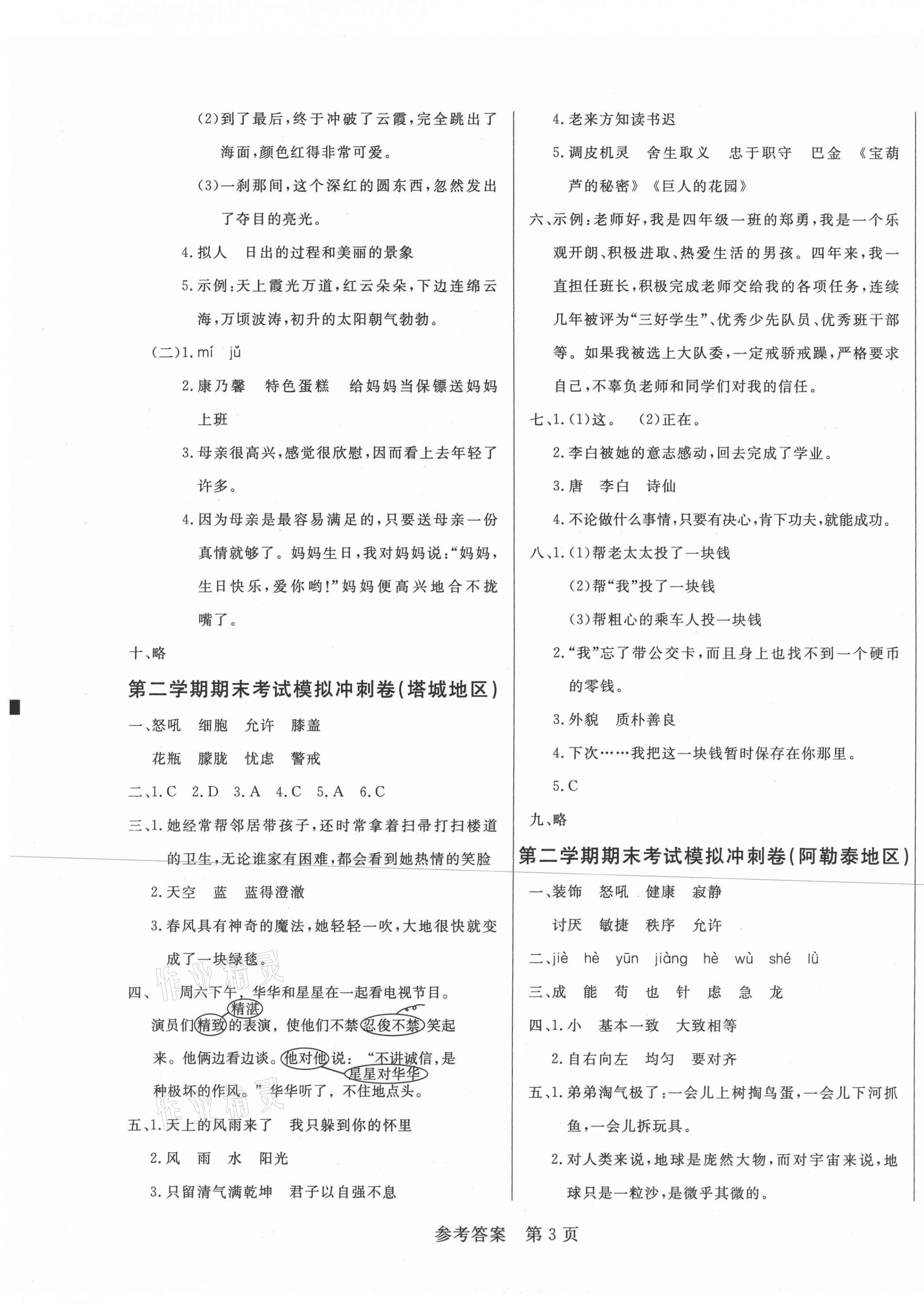 2021年黄冈名卷四年级语文下册人教版新疆专版