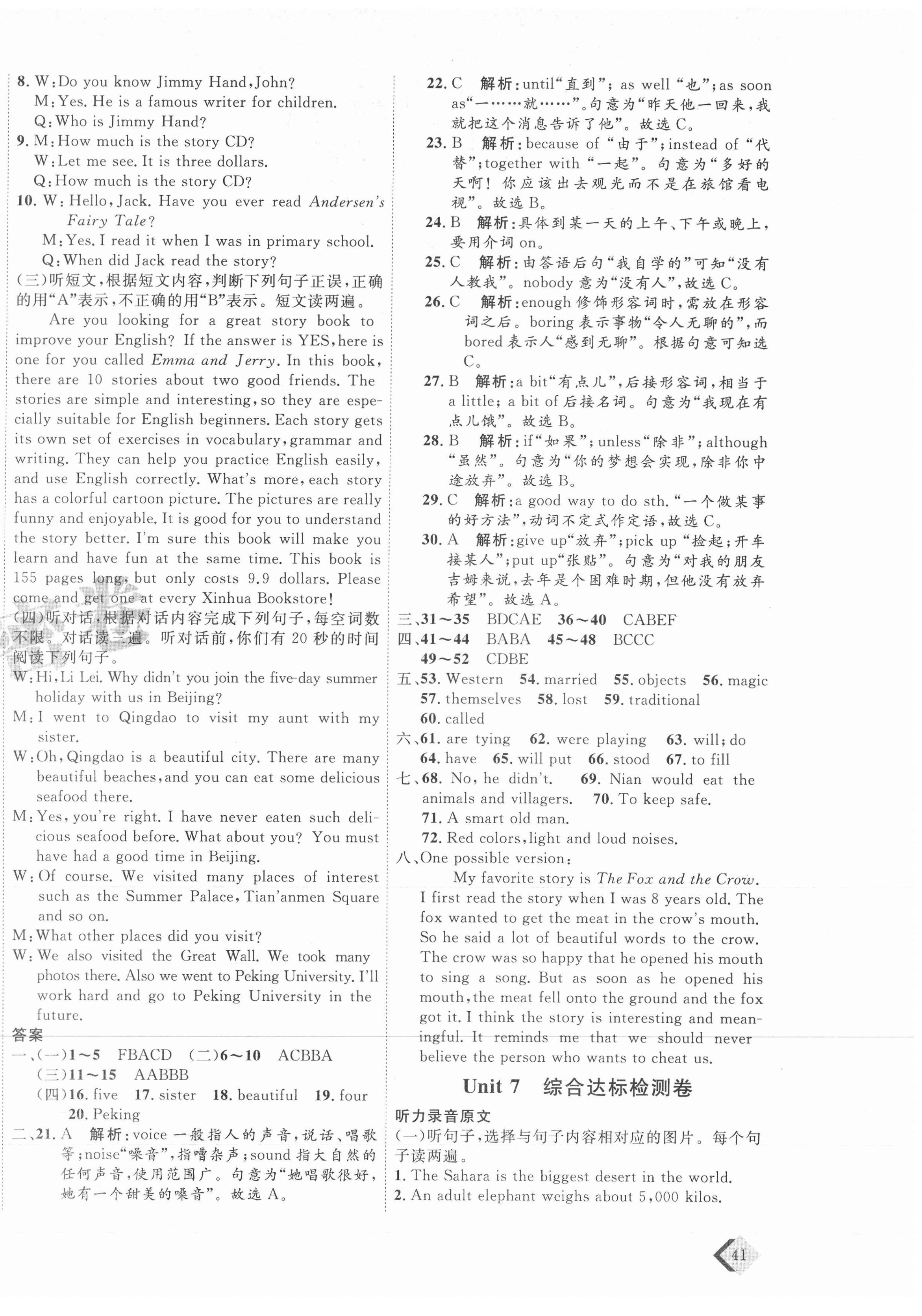 注:目前有些书本章节名称可能整理的还不是很完善,但都是按照顺序排列的,请同学们按照顺序仔细查找。练习册 2021年优加密卷八年级英语下册人教版临沂专版 答案主要是用来给同学们做完题方便对答案用的,请勿直接抄袭。
